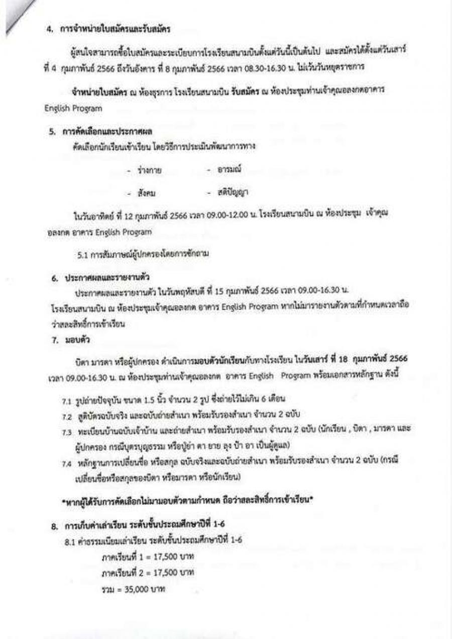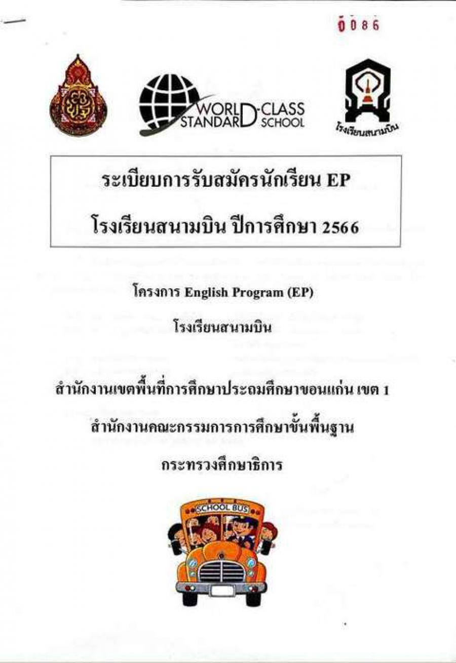 ระเบียบการรับสมัครนักเรียน ชั้นประถมศึกษาปีที่1 โครงการจัดการเรียนการสอนตามหลักสูตรกระทรวงศึกษาธิการเป็นภาษาอังกฤษ(English Program) โรงเรียนสนามบินปีการศึกษา 2566 S:0