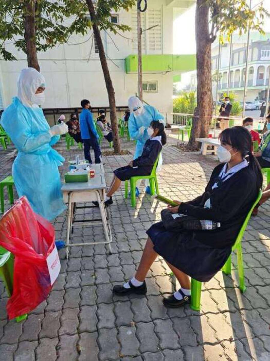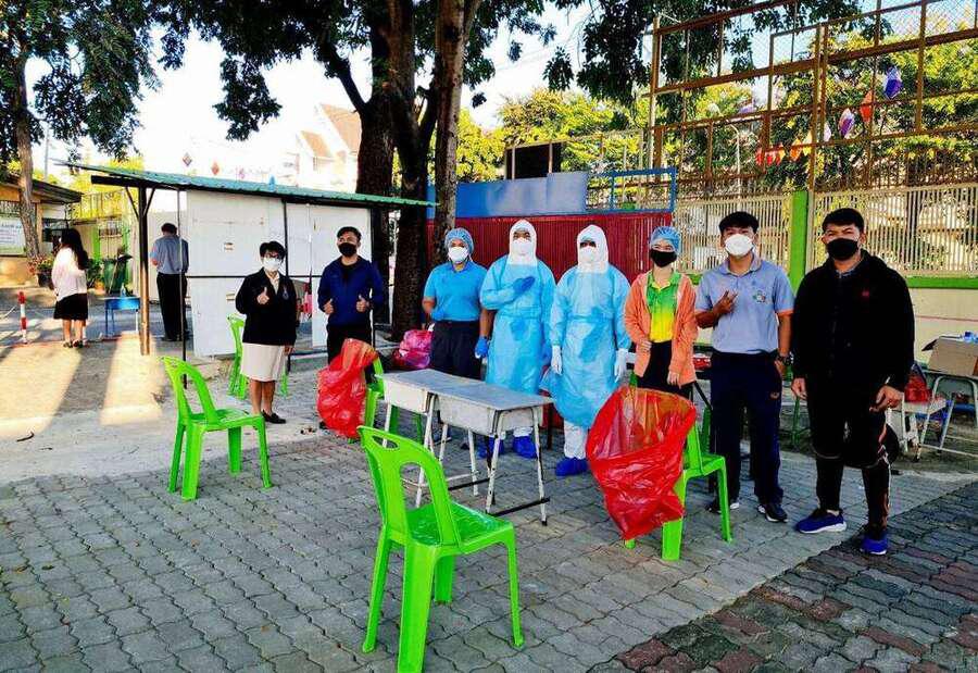 การสุ่มตรวจ ATK ให้กับนักเรียนที่มาโรงเรียนในรูปแบบ On-site