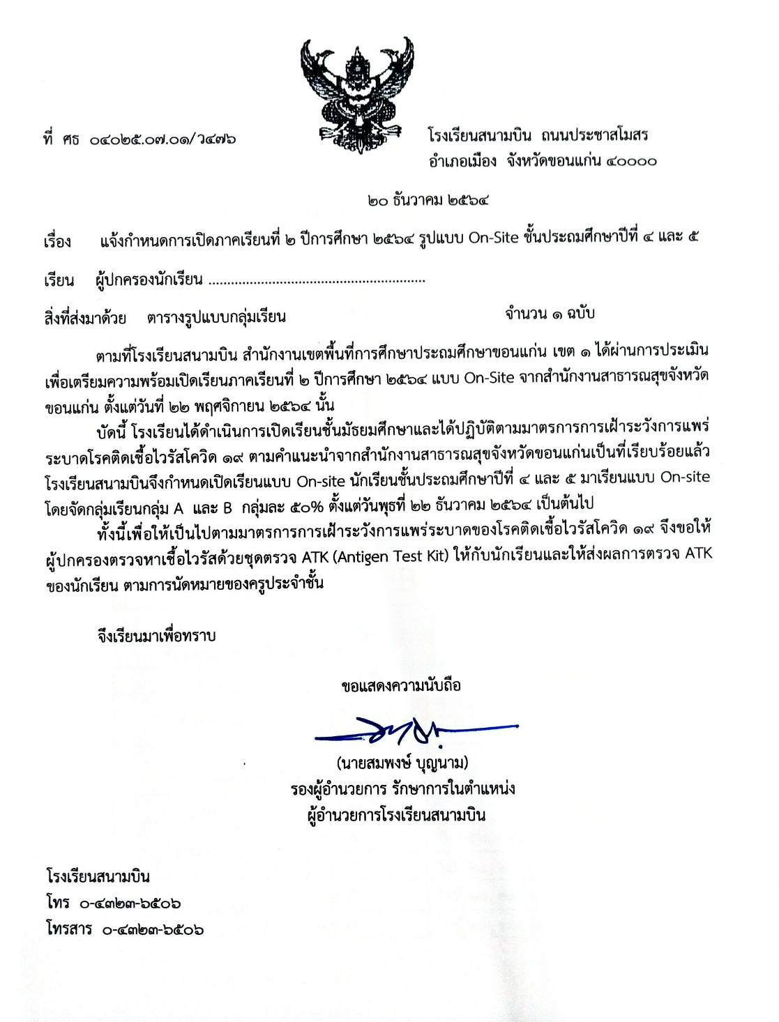 เปิดเรียนรูปแบบ on-site ป.4-ป.5