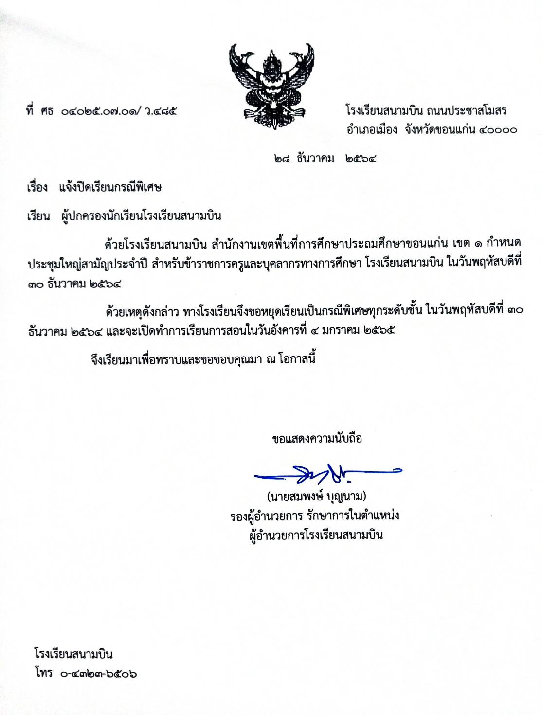 ปิดเรียนกรณีพิเศษ
