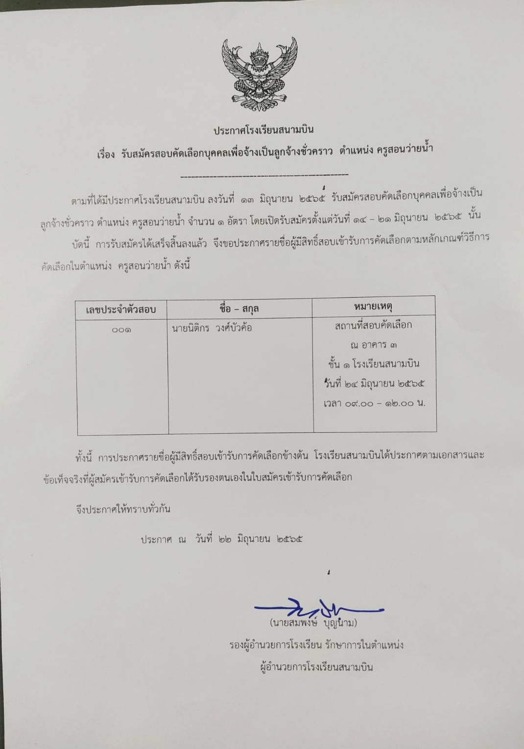 รับรายชื่อผู้มีสิทธิ์สอบคัดเลือกบุคคลเพื่อจ้างเป็นลูกจ้างชั่วคราว ตำแหน่งครูสอนว่ายน้ำ