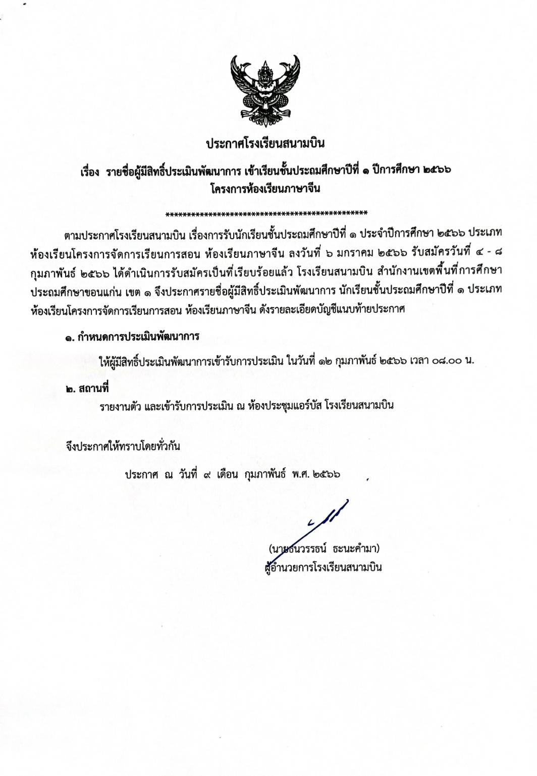 ประกาศ นักเรียนมีสิทธิ์ประเมินพัฒนาการ ป.1 ห้องเรียน
