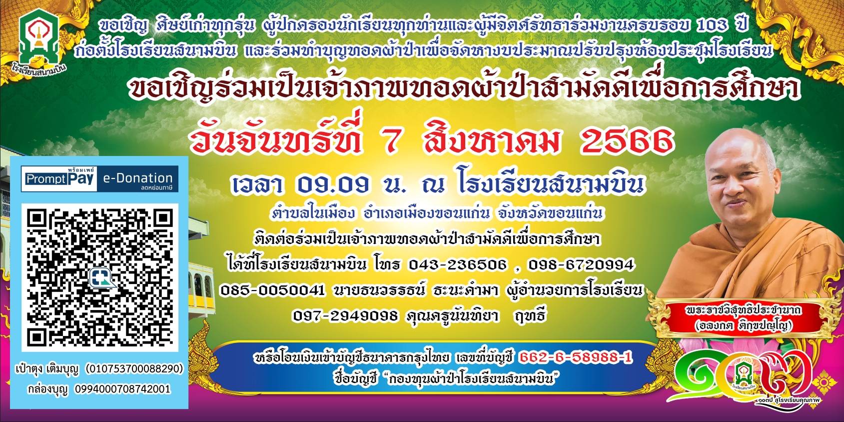 ขอเชิญร่วมเป็นเจ้าภาพทอดผ้าป่าสามัคคีเพื่อการศึกษา ๑๐๓ ปีโรงเรียนสนามบิน