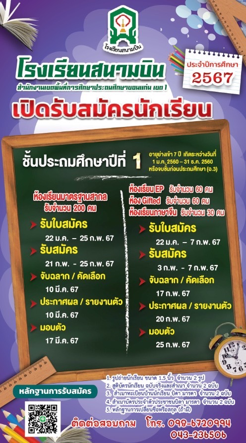 รับสมัคร น.ร. ประถมศึกษาปีที่1 2567