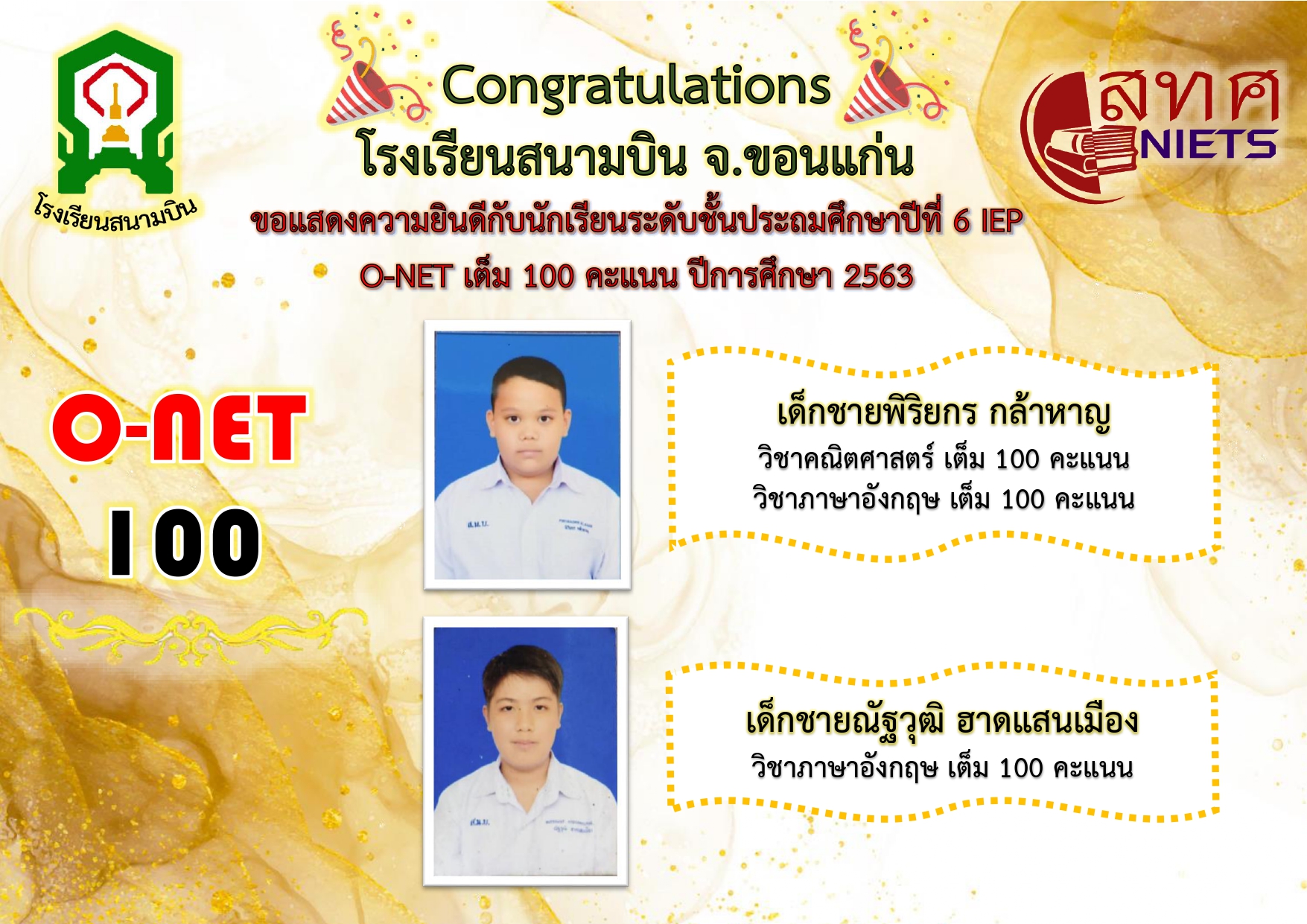 โรงเรียนสนามบินขอแสดงความชื่นชมยินดีกับลูกสนามบิน ได้คะแนน O-NET เต็ม 100 ในปีการศึกษา 2563