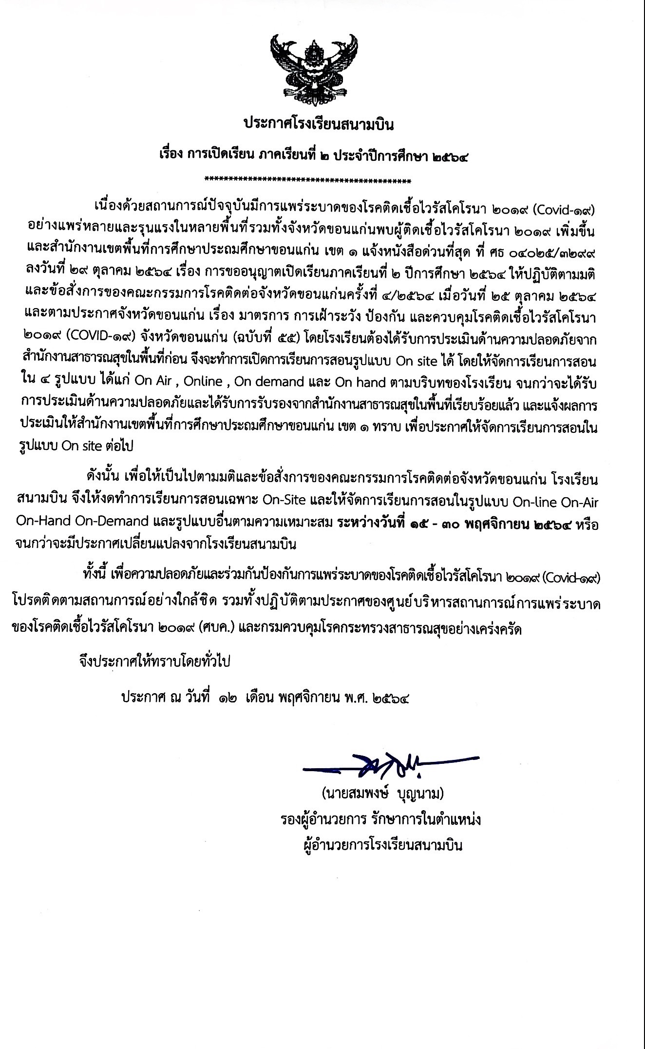 การเปิดเรียนระหว่างวันที่15-30พ.ย.64