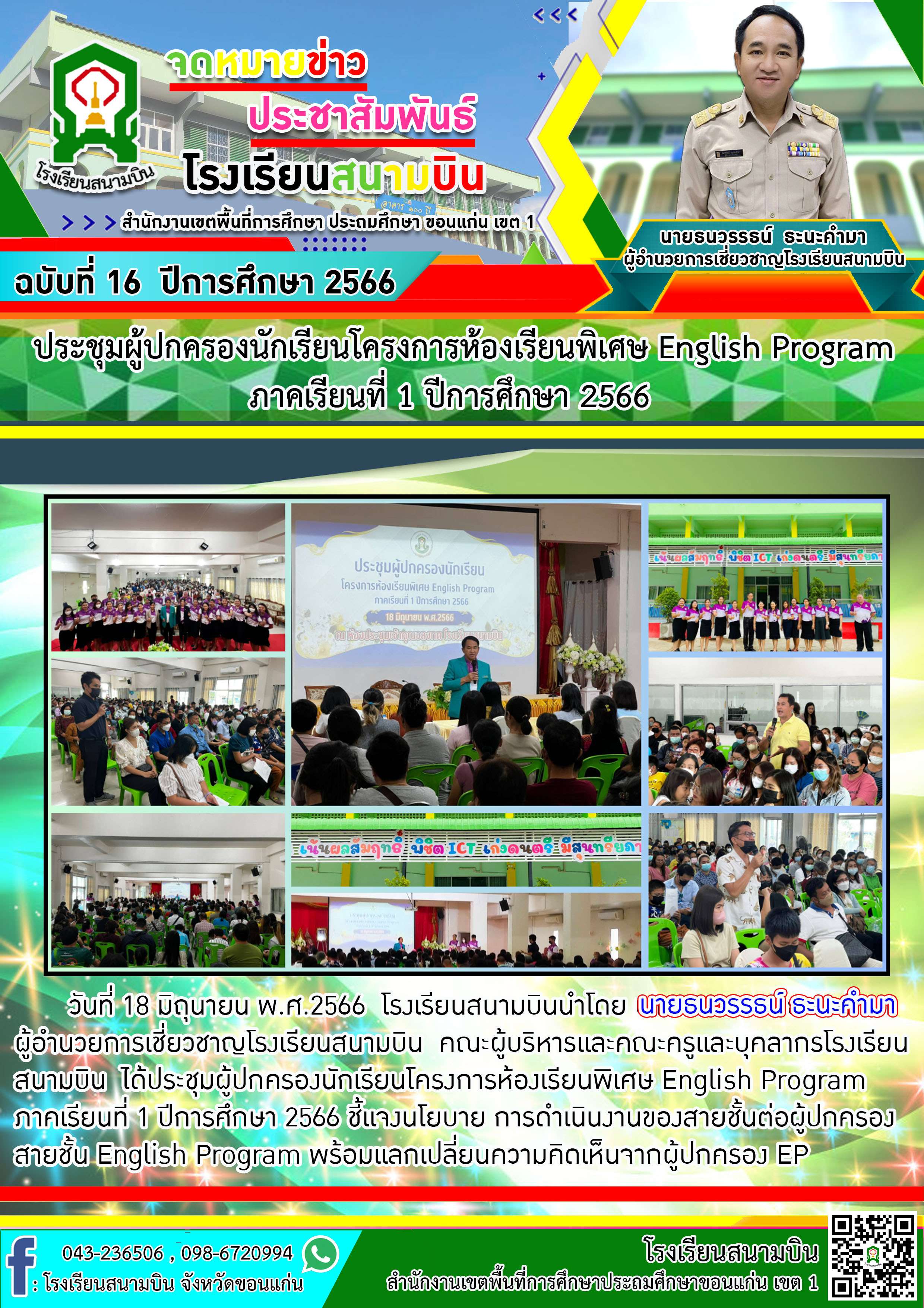 ประชุมผู้ปกครองโครงการห้องเรียนพิเศษ English Program ภาคเรียนที่ 1 ปีการศึกษา 2566