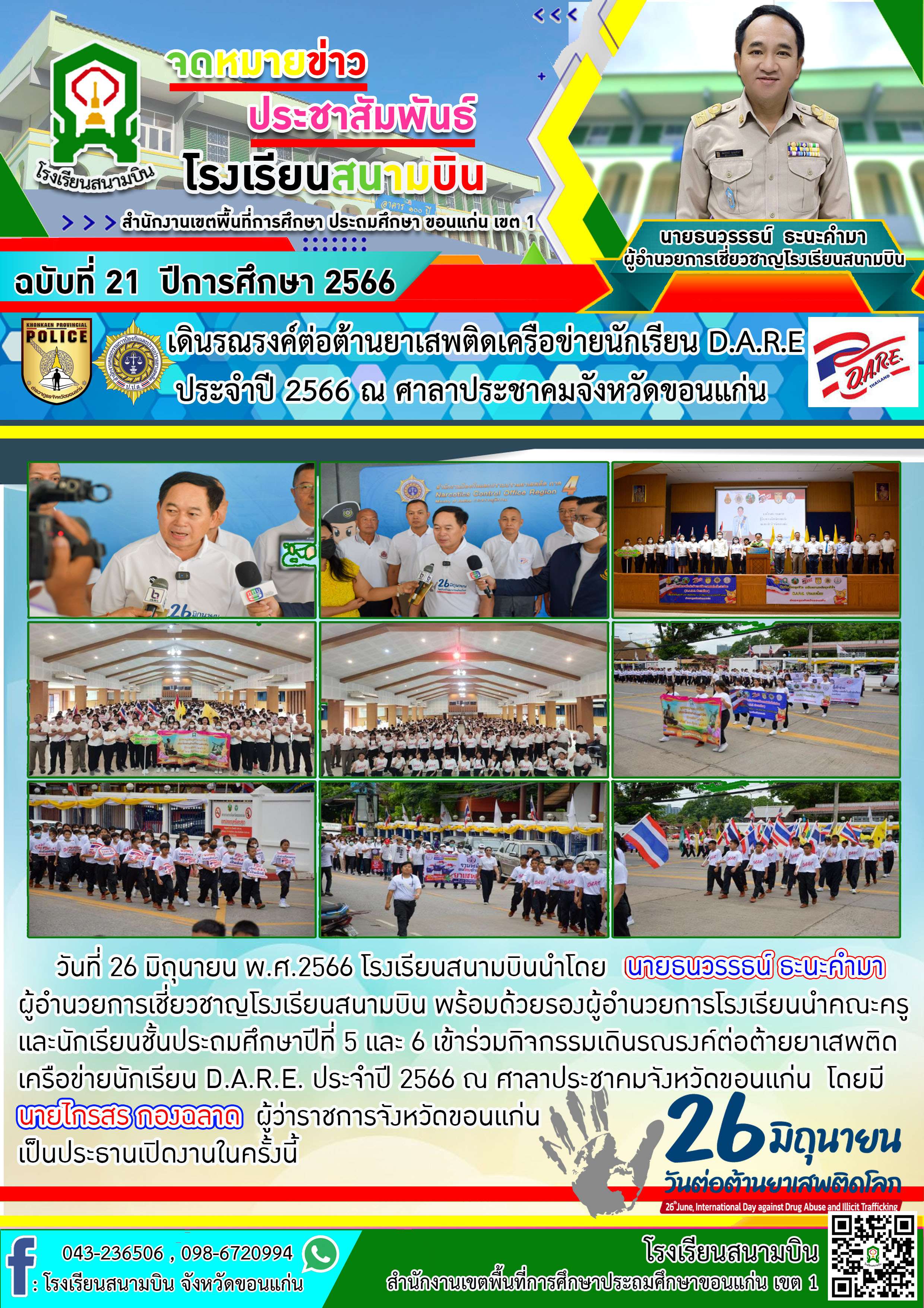 เดินรณรงค์ต่อต้านยาเสพติดเครือข่ายนักเรียน D.A.R.E. ประจำปี 2566 ณ ศาลาประชาคมจังหวัดขอนแก่น