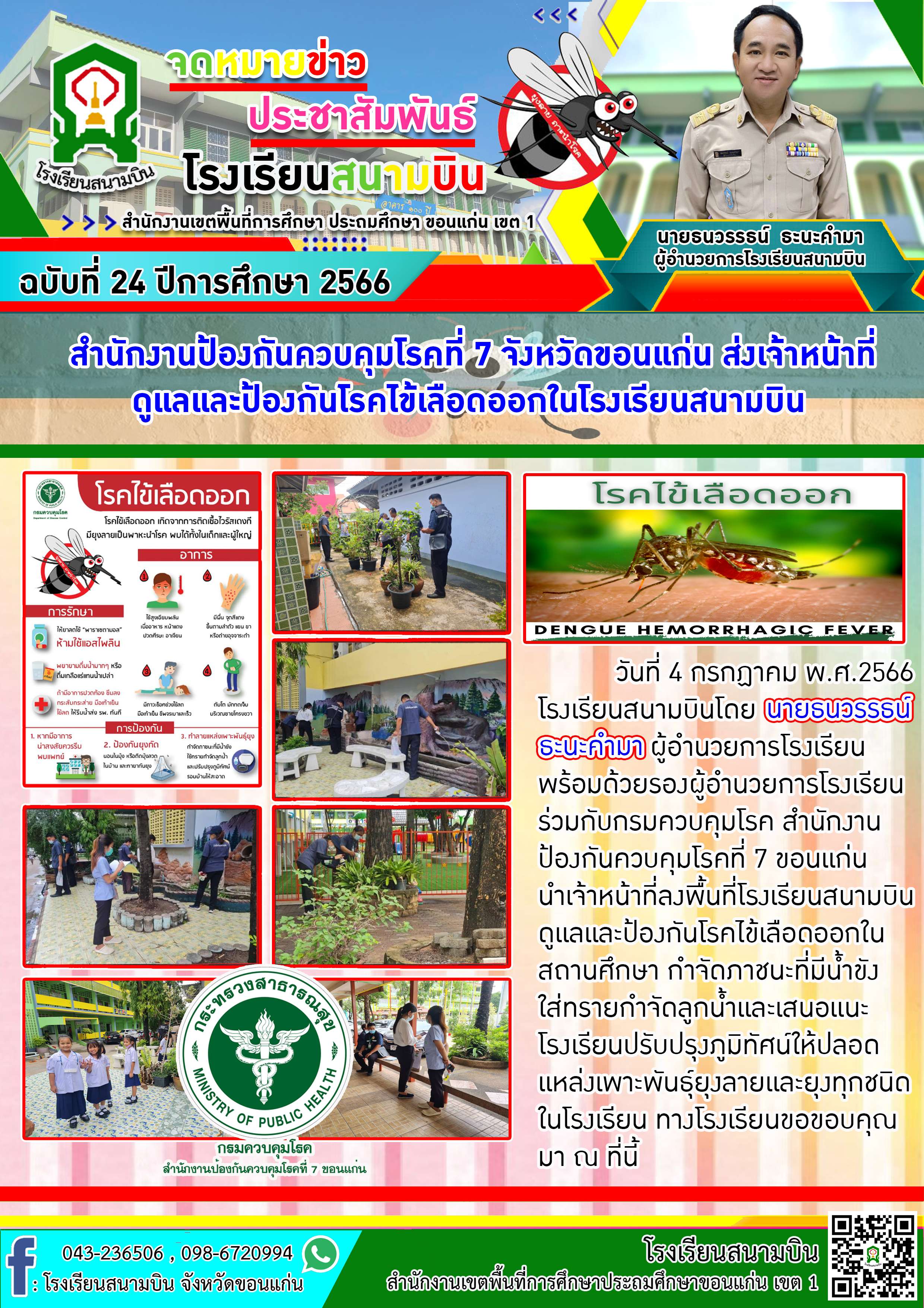 สำนักงานป้องกันควบคุมโรคที่ 7 จังหวัดขอนแก่น ส่งเจ้าหน้าที่่ ดูแลและป้องกันโรคไข้เลือดออกในโรงเรียนสนามบิน