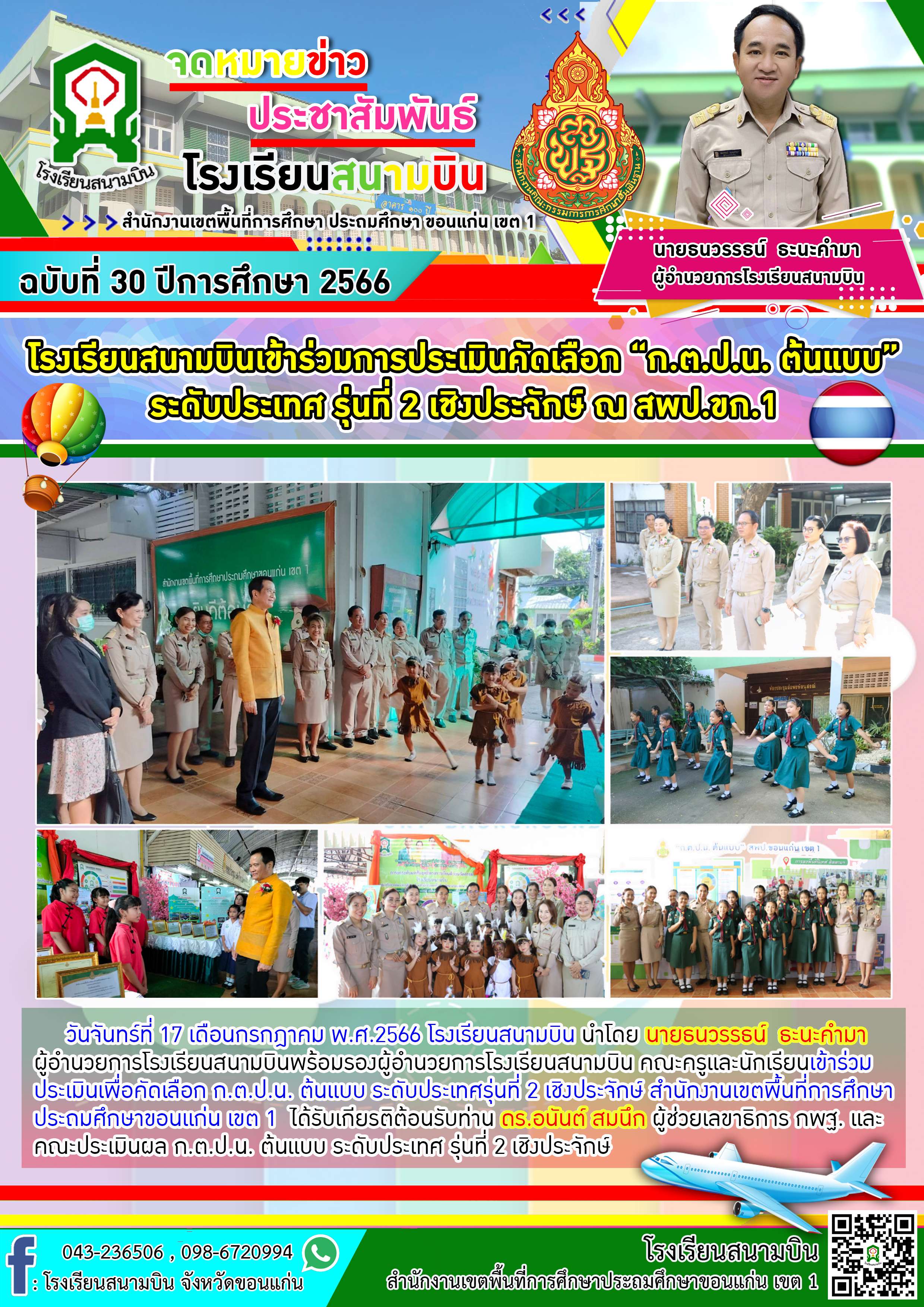 โรงเรียนสนามบินเข้าร่วมการประเมิน ก.ต.ป.น. ต้นแบบ ระดับประเทศรุ่นที่ 2 เชิงประจักษ์ ณ สพป.ขก.1