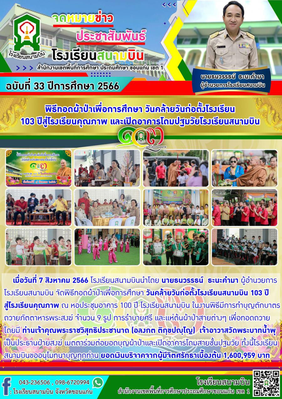 พิธีทอดผ้าป่าเพื่อการศึกษา วันคล้ายวันก่อตั้งโรงเรียน 103 ปีสู่โรงเรียนคุณภาพ และเปิดอาคารโดมปฐมวัยโรงเรียนสนามบิน