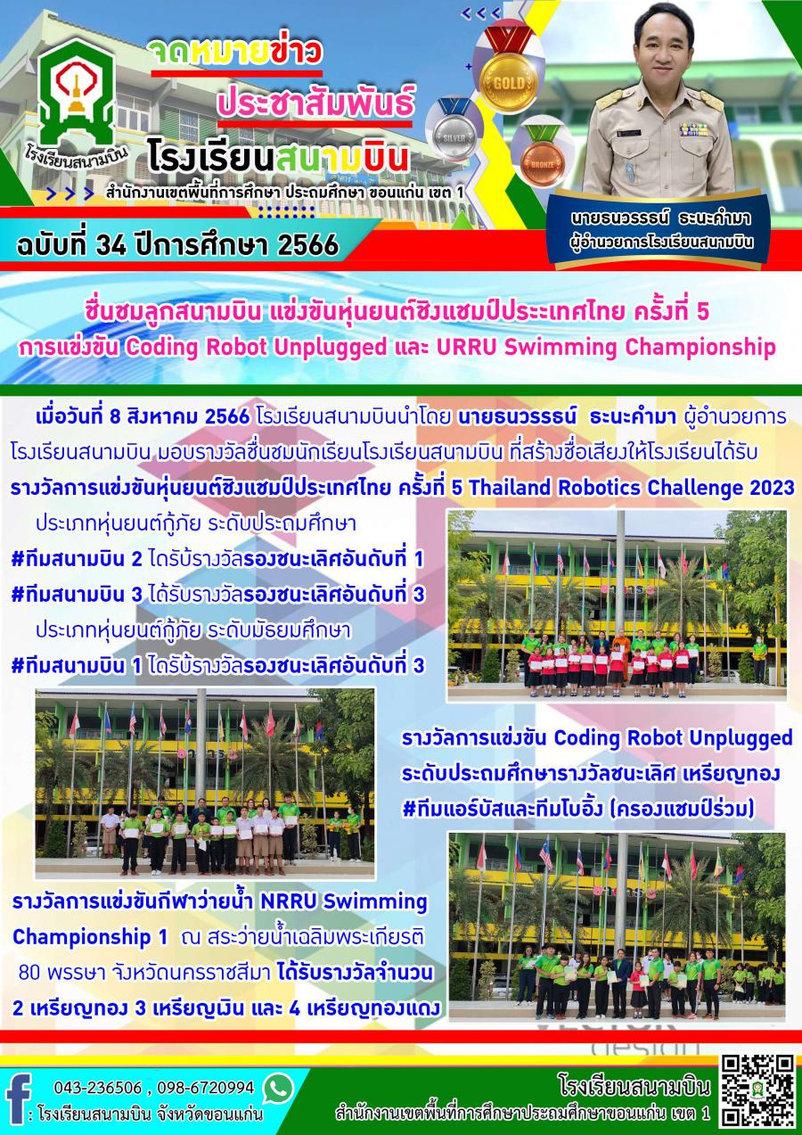 ชื่นชมลูกสนามบิน แข่งขันหุ่นยนต์ชิงแชมป์ประะเทศไทย ครั้งที่ 5 การแข่งขัน Coding Robot Unplugged และ URRU Swimming Championship
