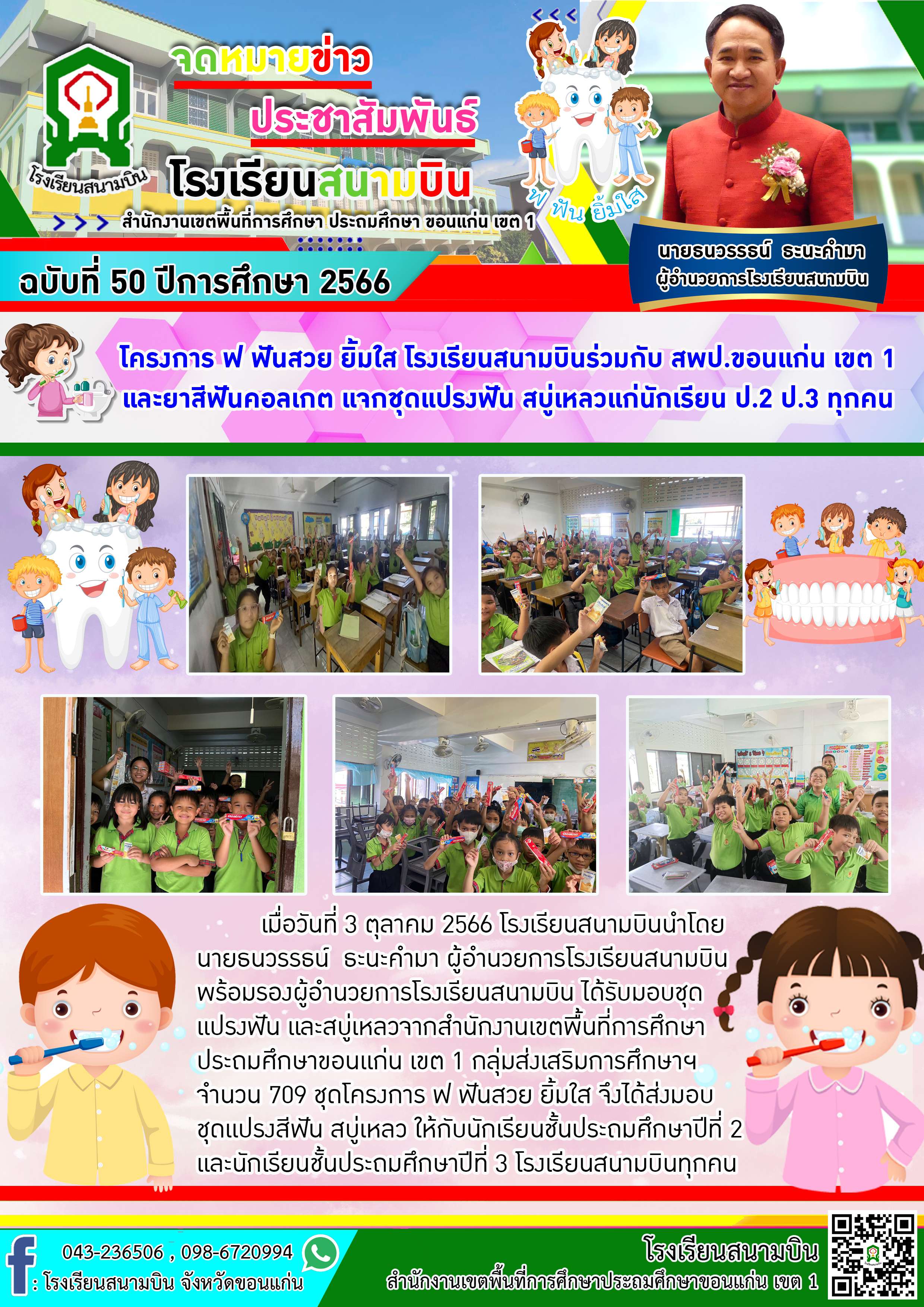 โครงการ ฟ ฟันสวย ยิ้มใส โรงเรียนสนามบินร่วมกับ สพป.ขอนแก่น เขต 1 และยาสีฟันคอลเกต แจกชุดแปรงฟัน สบู่เหลวแก่นักเรียน ป.2 ป.3 ทุกคน