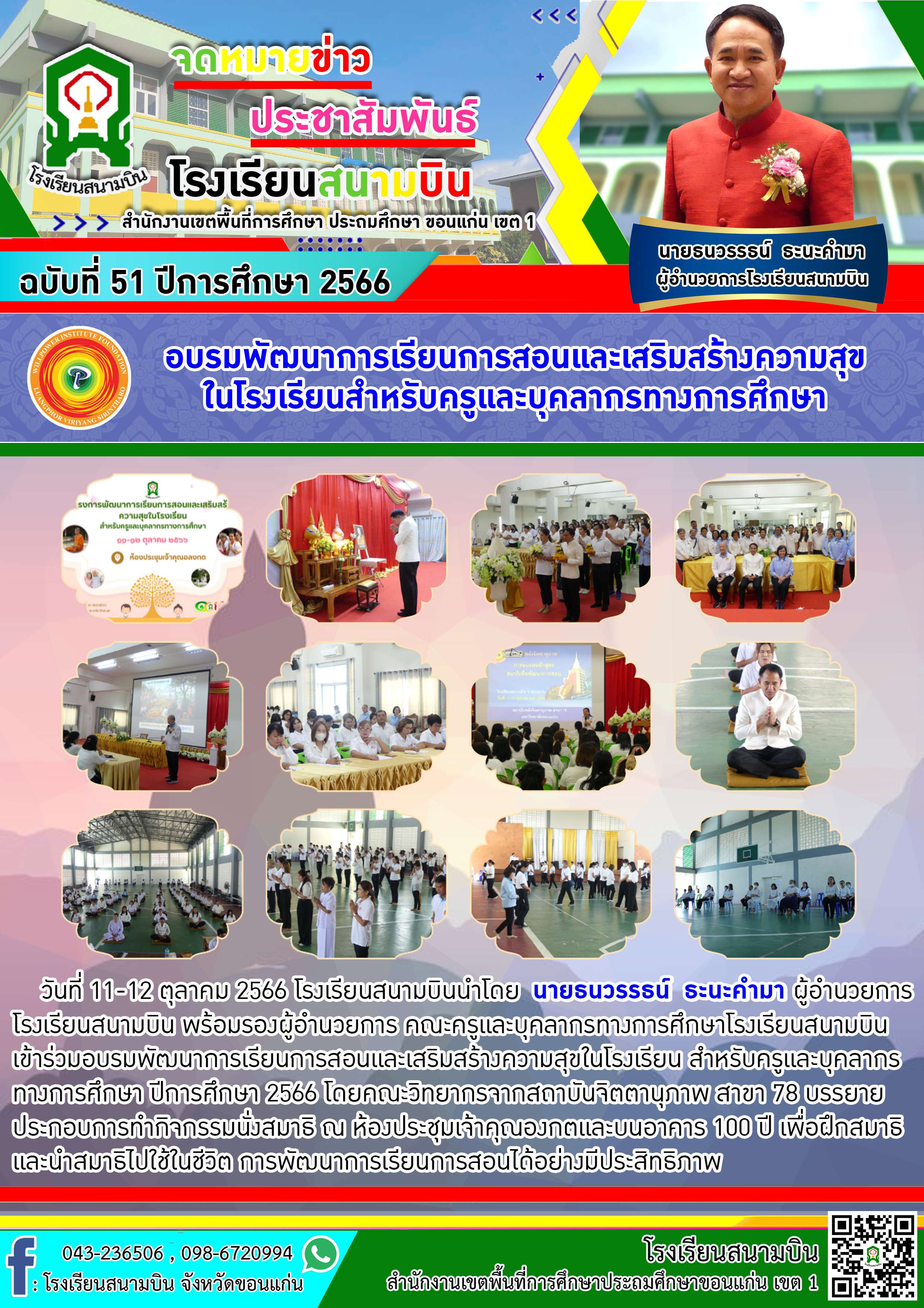 อบรมพัฒนาการเรียนการสอนและเสริมสร้างความสุข ในโรงเรียนสำหรับครูและบุคลากรทางการศึกษา