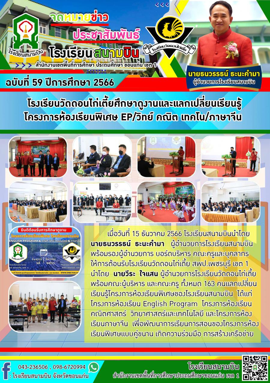 โรงเรียนวัดดอนไก่เตี้ยศึกษาดูงานและแลกเปลี่ยนเรียนรู้ โครงการห้องเรียนพิเศษ EP/วิทย์ คณิต เทคโน/ภาษาจีน