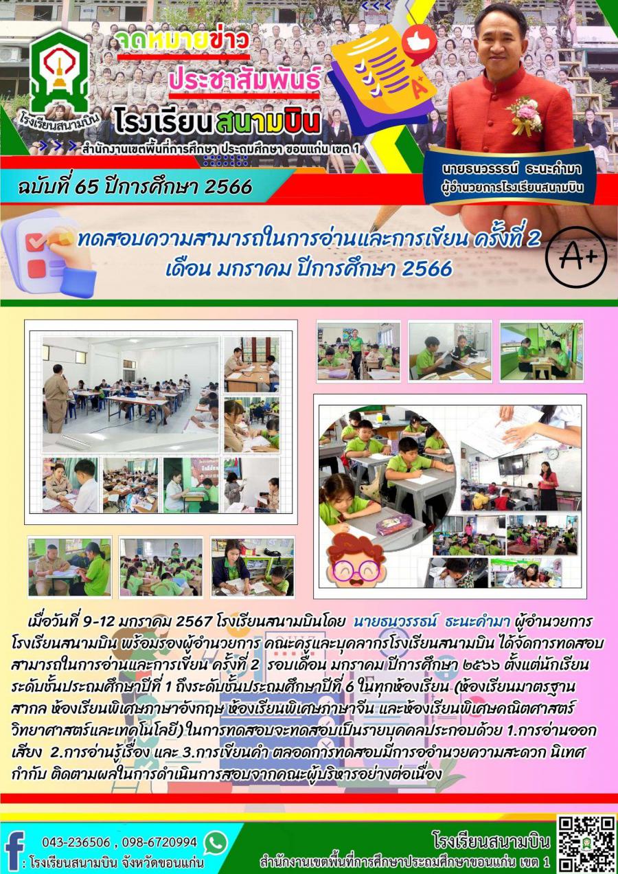 ทดสอบความสามารถในการอ่านและการเขียน ครั้งที่ 2 เดือน มกราคม ปีการศึกษา 2566