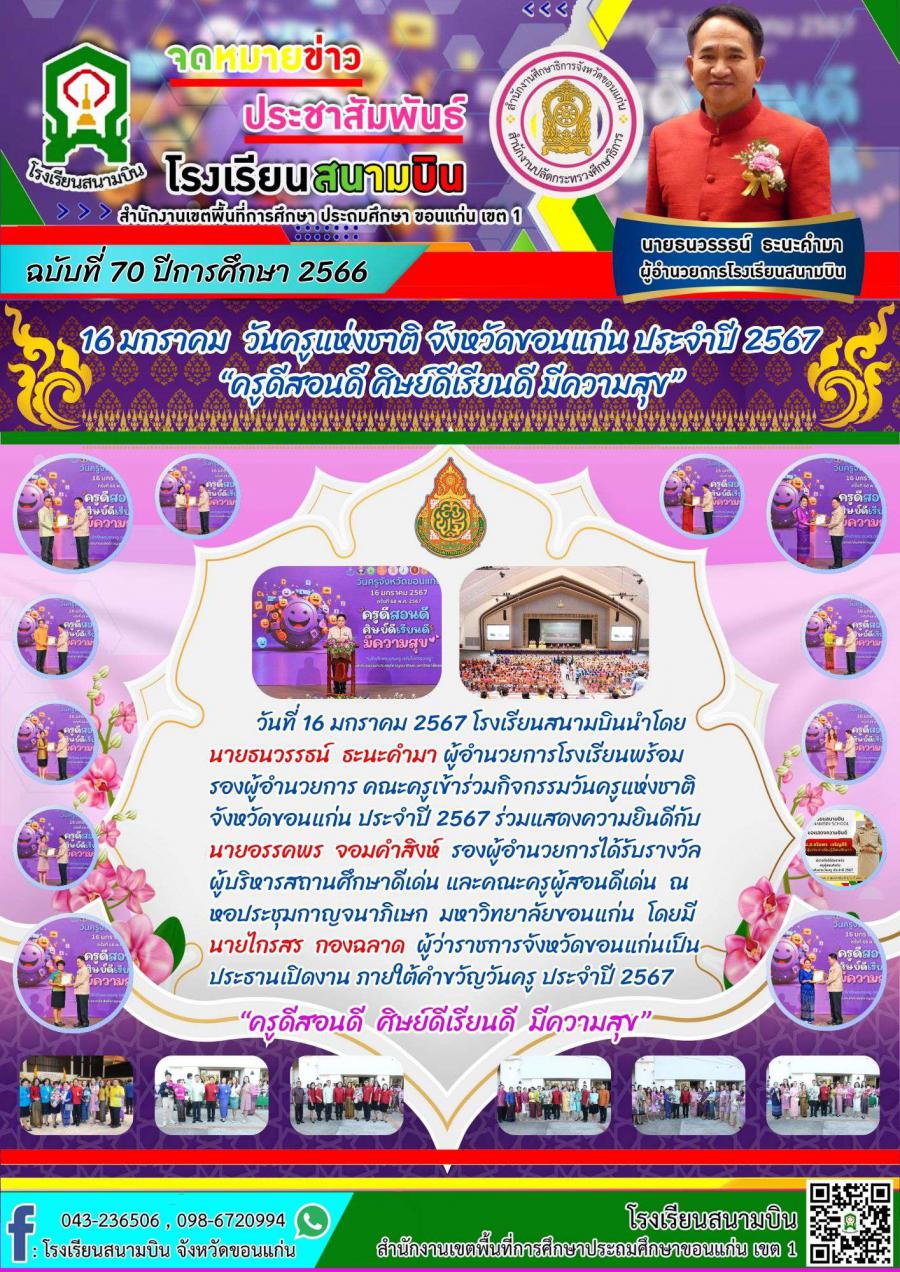 16 มกราคม วันครูแห่งชาติ จังหวัดขอนแก่น ประจำปี 2567 ?ครูดีสอนดี ศิษย์ดีเรียนดี มีความสุข?