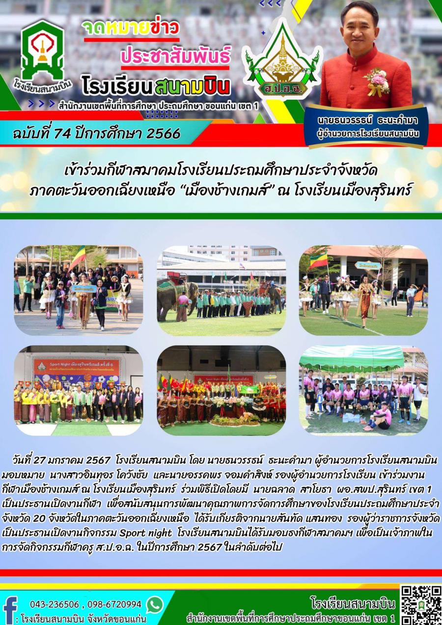 เข้าร่วมกีฬาสมาคมโรงเรียนประถมศึกษาประจำจังหวัด ภาคตะวันออกเฉียงเหนือ ?เมืองช้างเกมส์? ณ โรงเรียนเมืองสุรินทร์