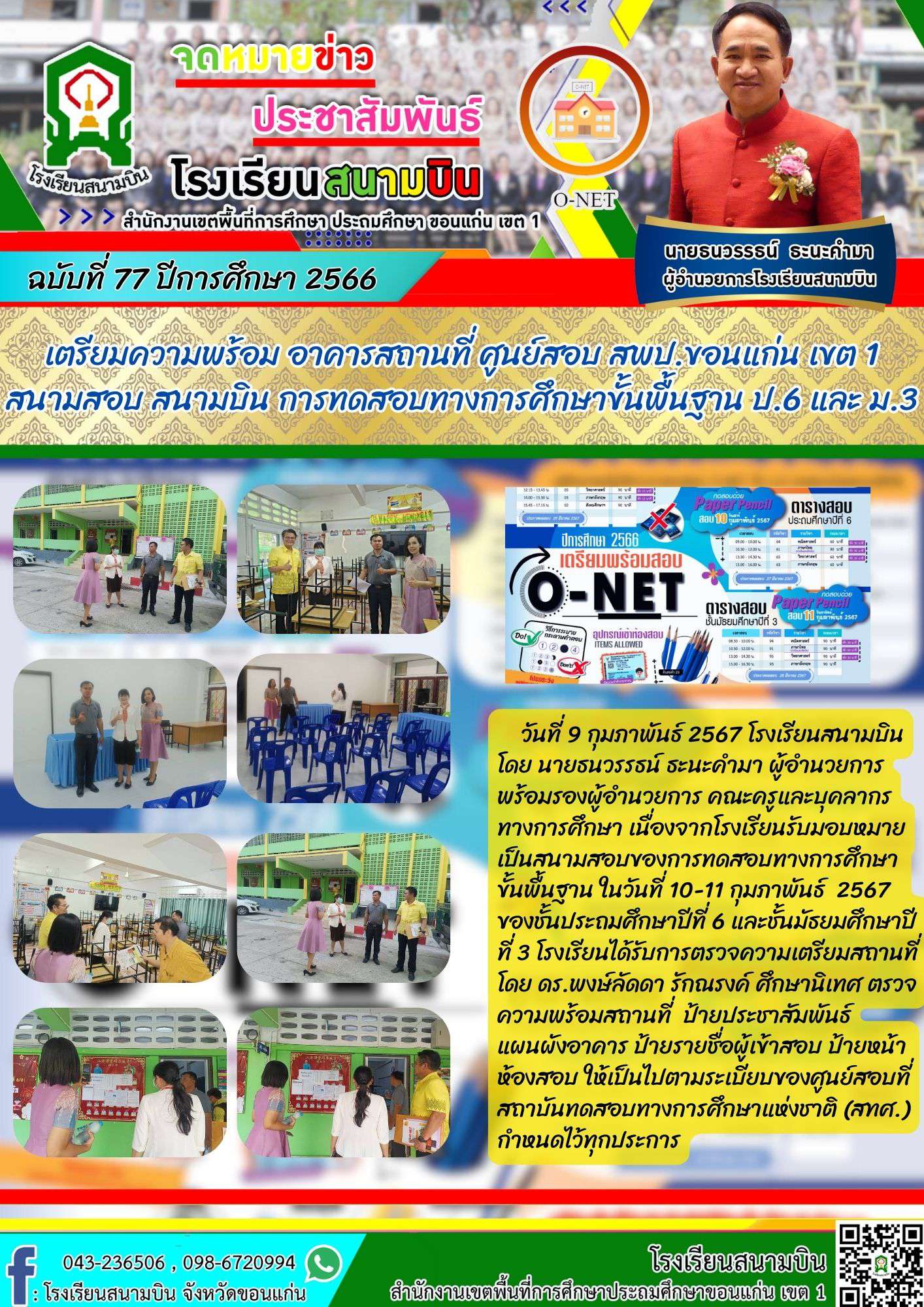 เตรียมความพร้อม อาคารสถานที่ ศูนย์สอบ สพป.ขอนแก่น เขต 1 สนามสอบ สนามบิน การทดสอบทางการศึกษาขั้นพื้นฐาน ป.6 และ ม.3