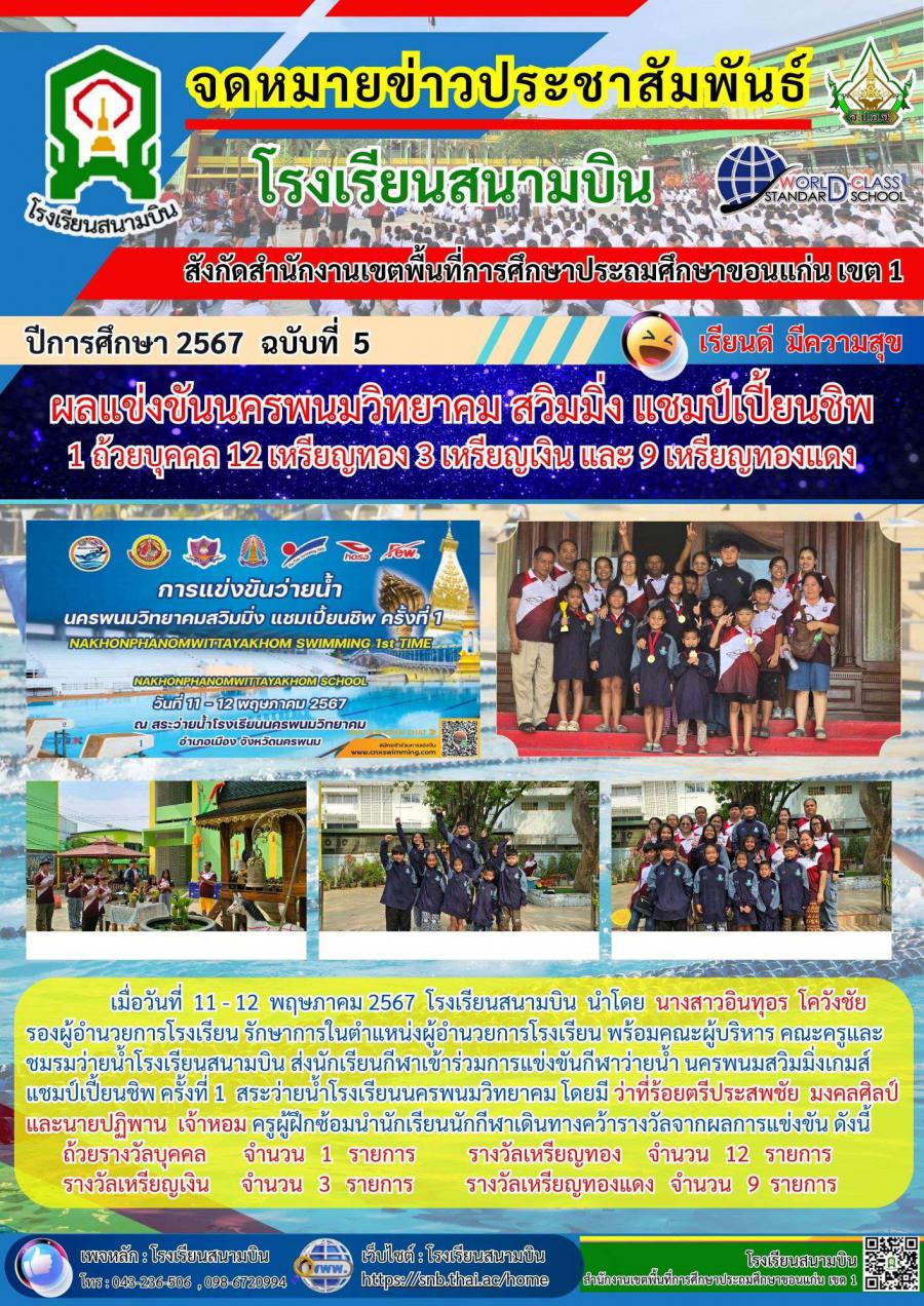 ผลแข่งขันนครพนมวิทยาคม สวิมมิ่ง แชมป์เปี้ยนชิพ 1 ถ้วยบุคคล 12 เหรียญทอง 3 เหรียญเงิน และ 9 เหรียญทองแดง