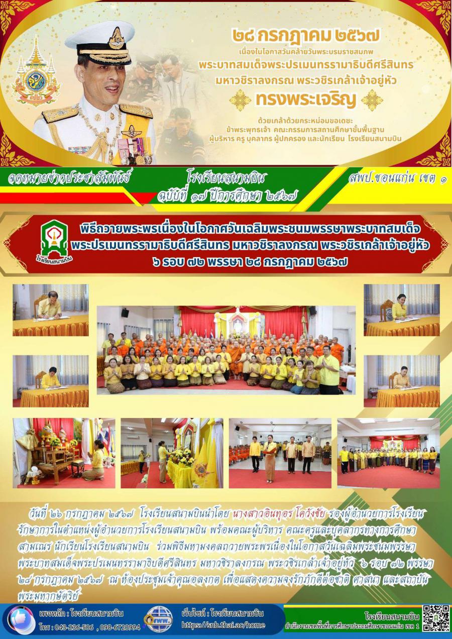 พิธีถวายพระพรเนื่องในโอกาศวันเฉลิมพระชนมพรรษาพระบาทสมเด็จ พระปรเมนทรรามาธิบดีศรีสินทร มหาวชิราลงกรณ พระวชิรเกล้าเจ้าอยู่หัว ๖ รอบ ๒๘ กรกฎาคม ๒๕๖๗