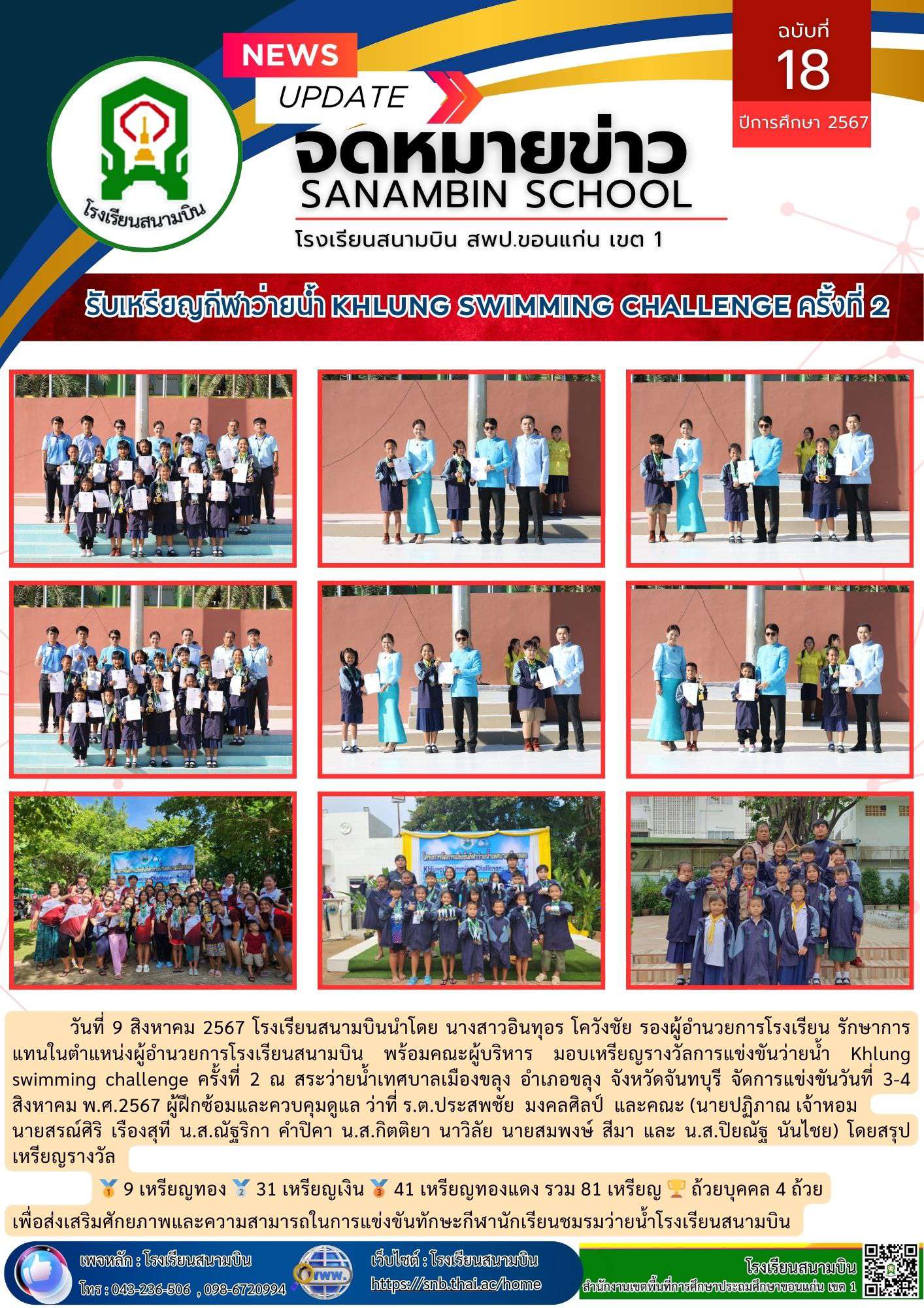 รับเหรียญกีฬาว่ายน้ำ Khlung swimming challenge ครั้งที่ 2