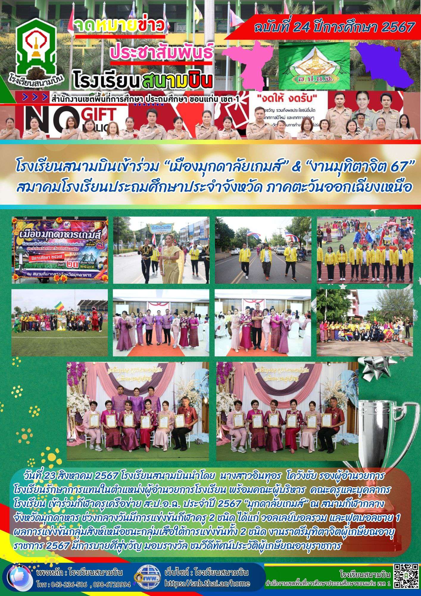 โรงเรียนสนามบินเข้าร่วม ?เมืองมุกดาลัยเกมส์? & ?งานมุทิตาจิต 67? สมาคมโรงเรียนประถมศึกษาประจำจังหวัด ภาคตะวันออกเฉียงเหนือ