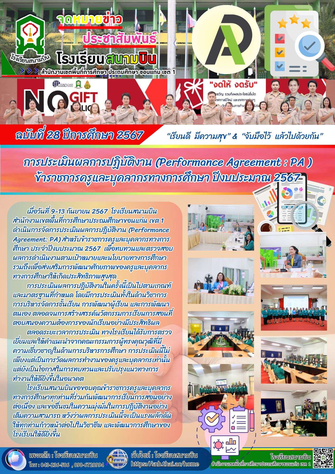 การประเมินผลการปฏิบัติงาน (Performance Agreement : PA ) ข้าราชการครูและบุคลากรทางการศึกษา ปีงบประมาณ 2567