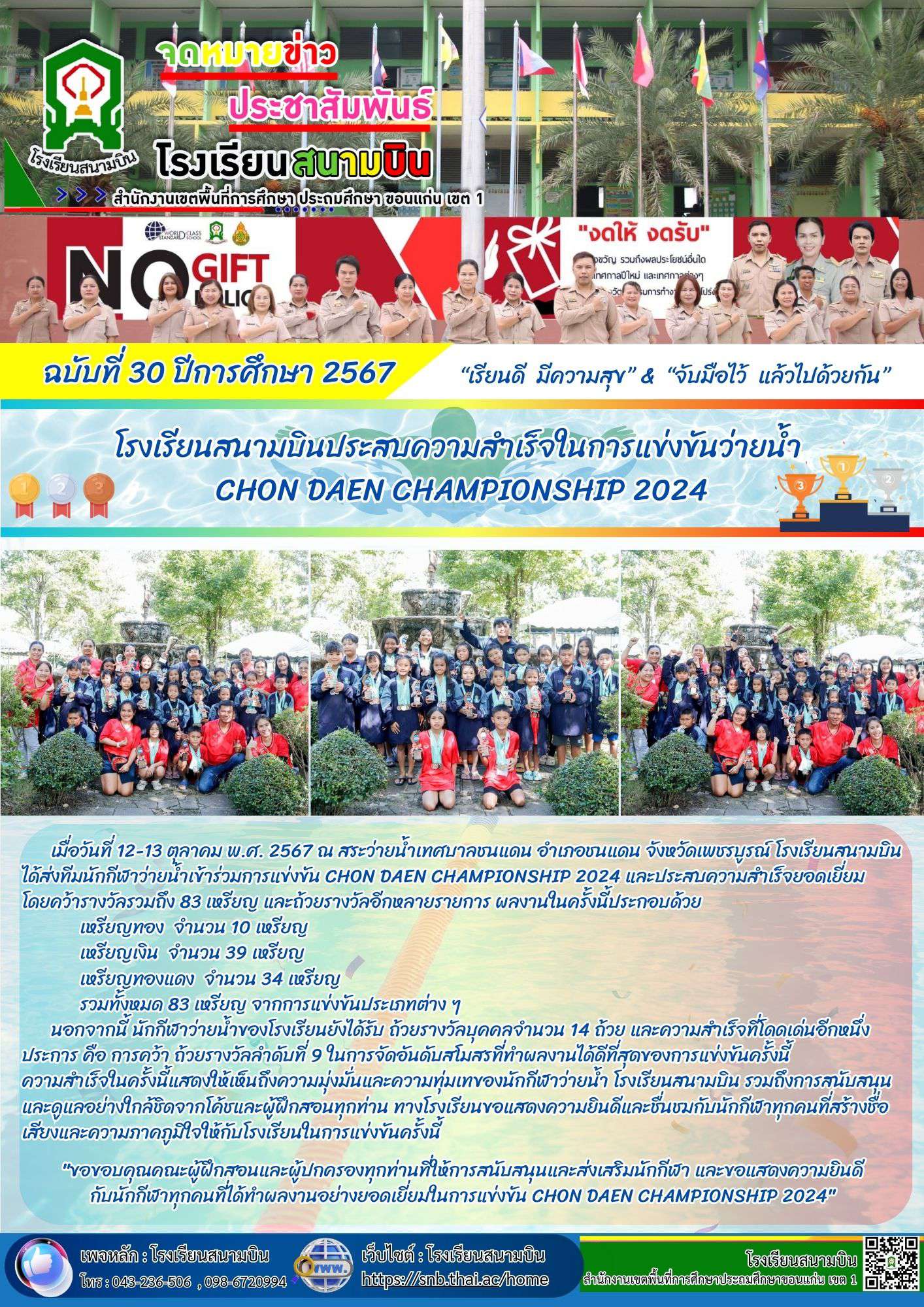 โรงเรียนสนามบินประสบความสำเร็จในการแข่งขันว่ายน้ำ CHON DAEN CHAMPIONSHIP 2024