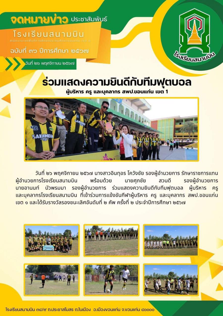 ร่วมแสดงความยินดีกับทีมฟุตบอล ผู้บริหาร ครู บุคลากร สพป.ขอนแก่น เขต 1