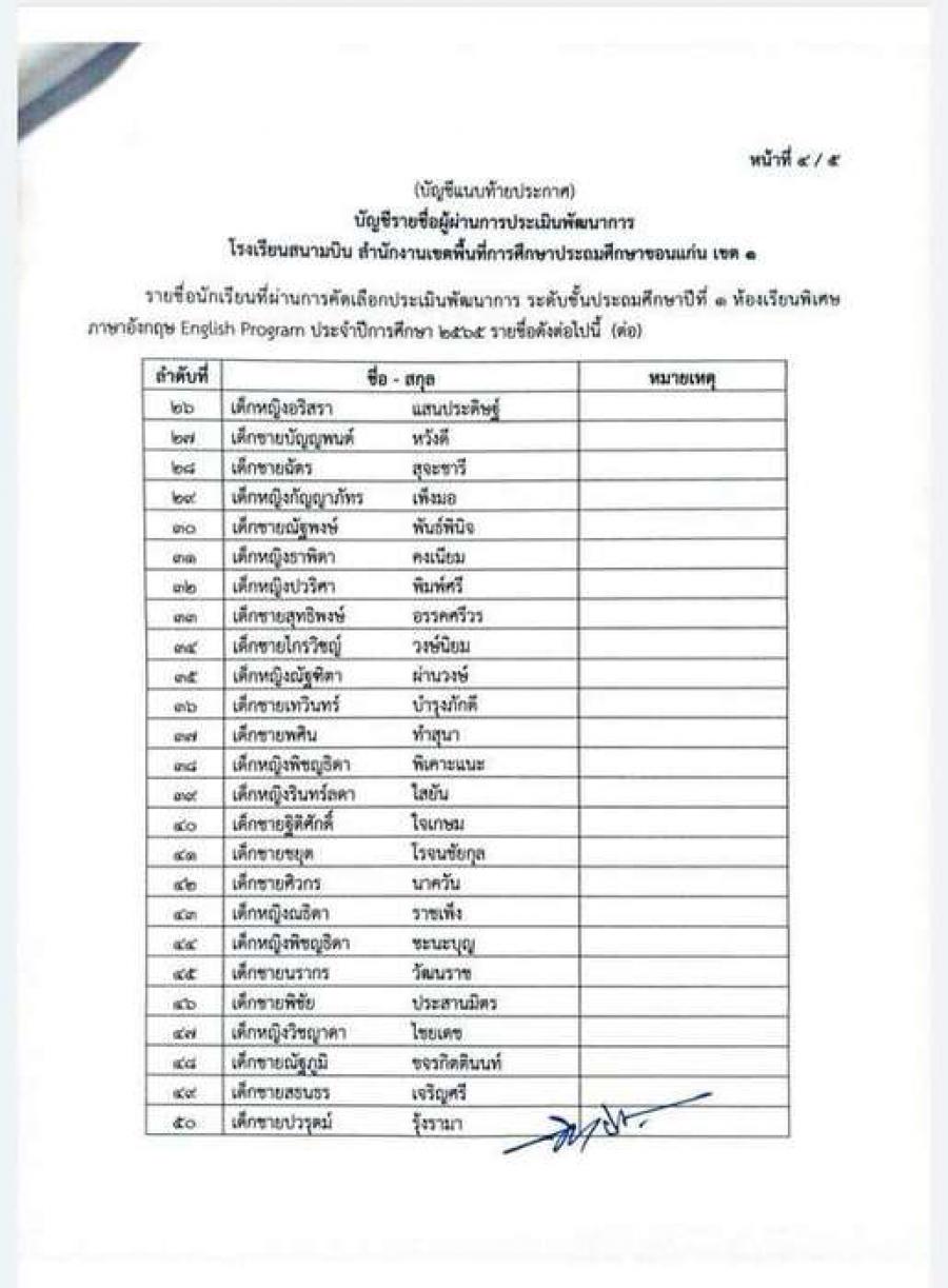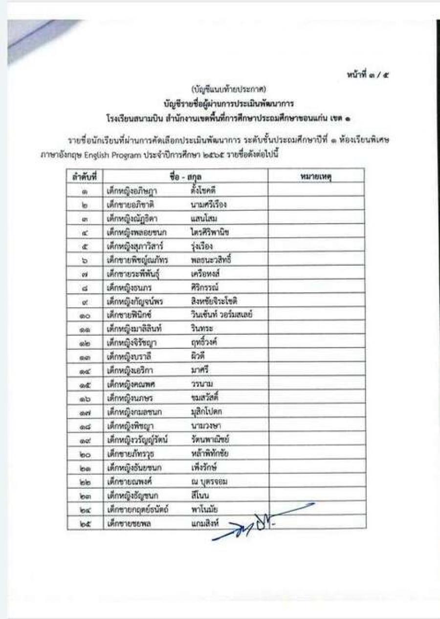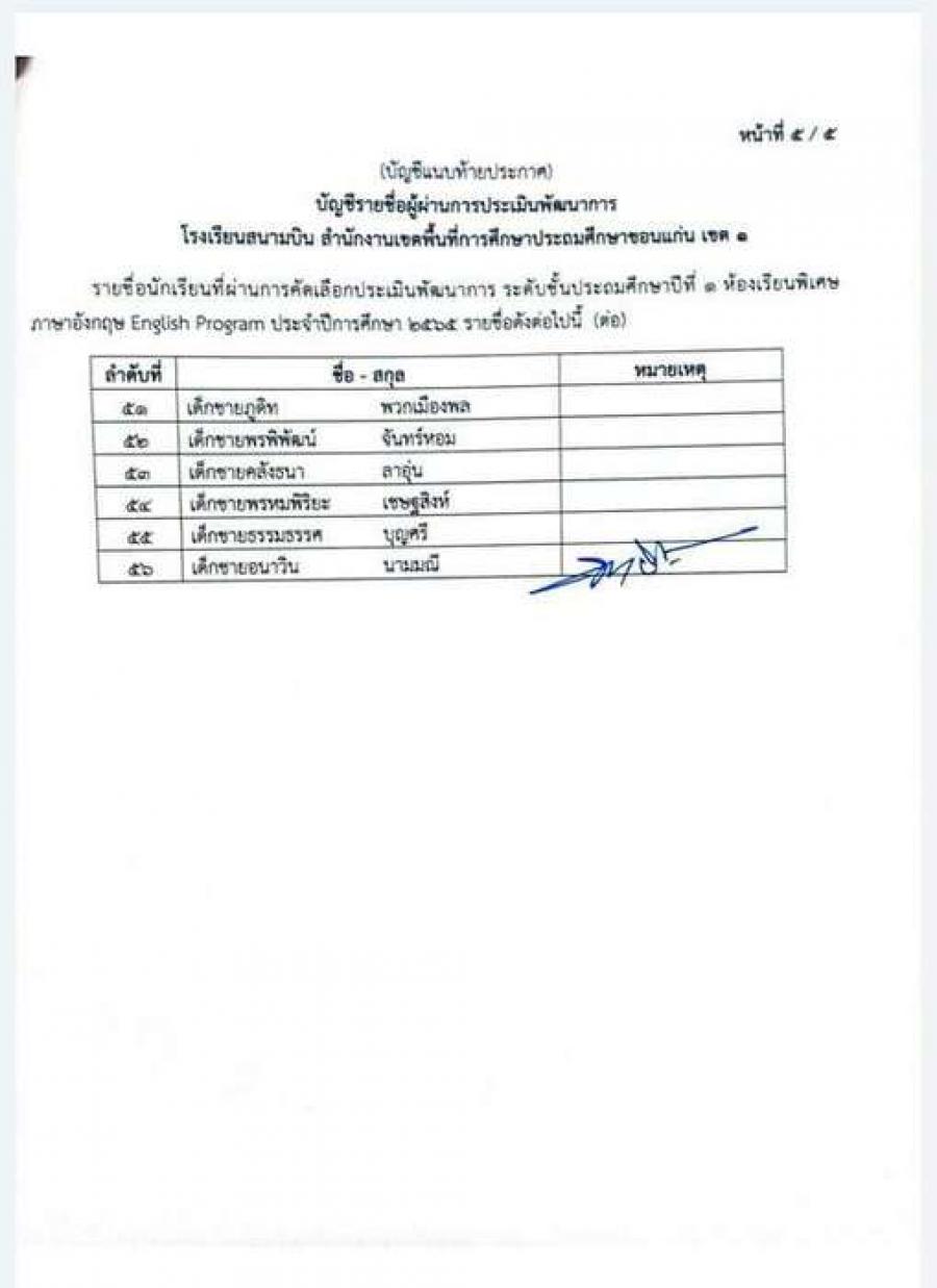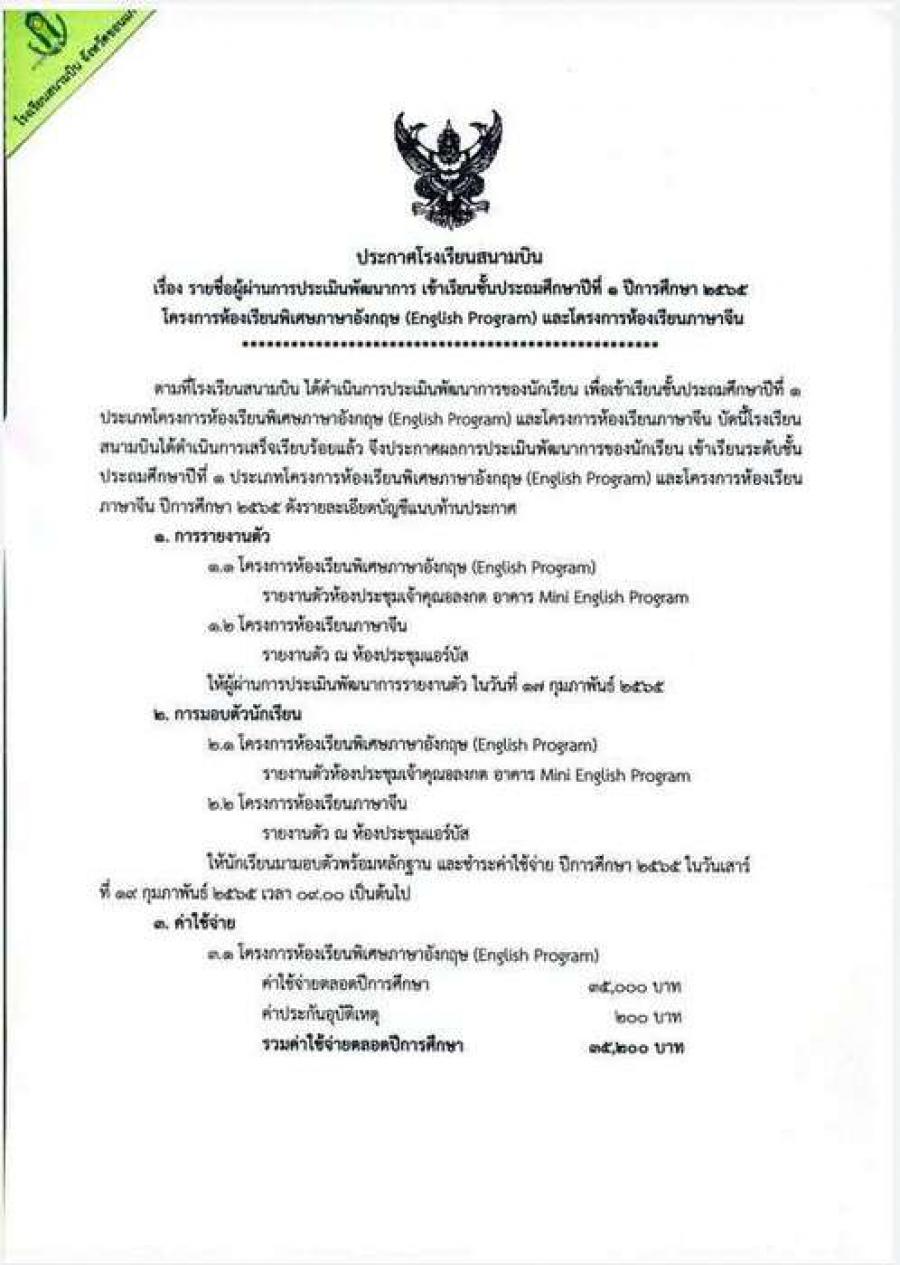 ประกาศผู้ผ่านประเมินพัฒนาการ เข้าเรียนชั้นประถมศึกษาปีที่1 ปีการศึกษา2565 S:0