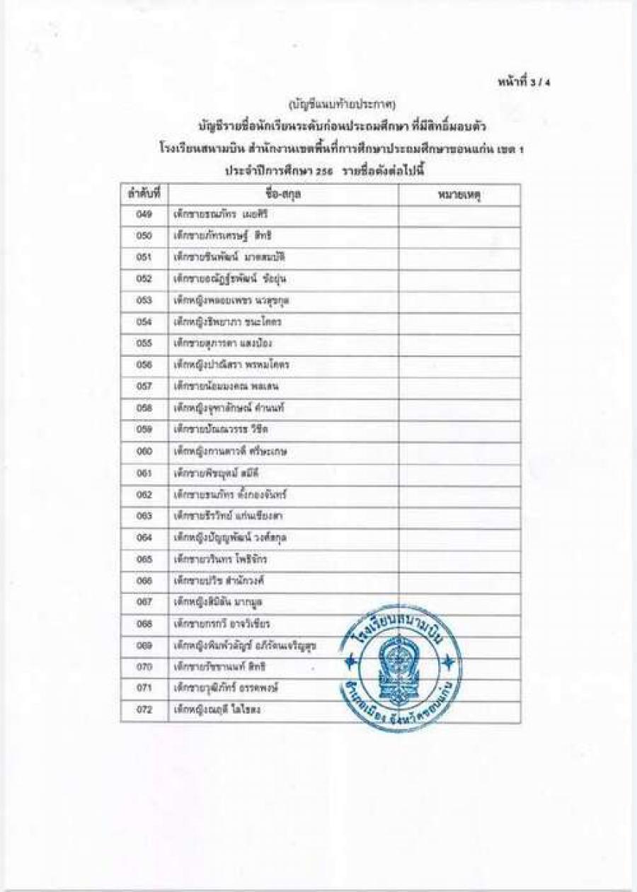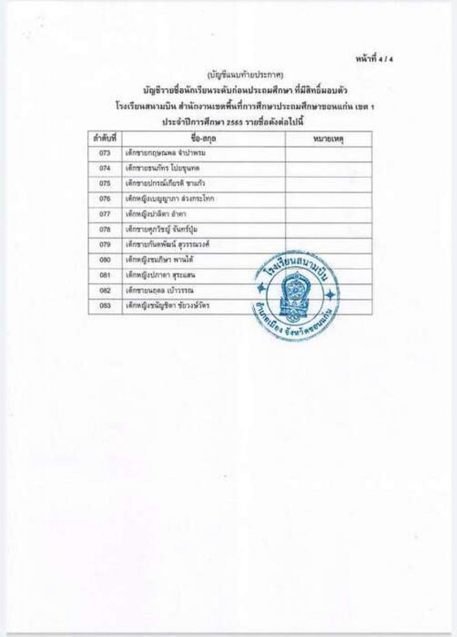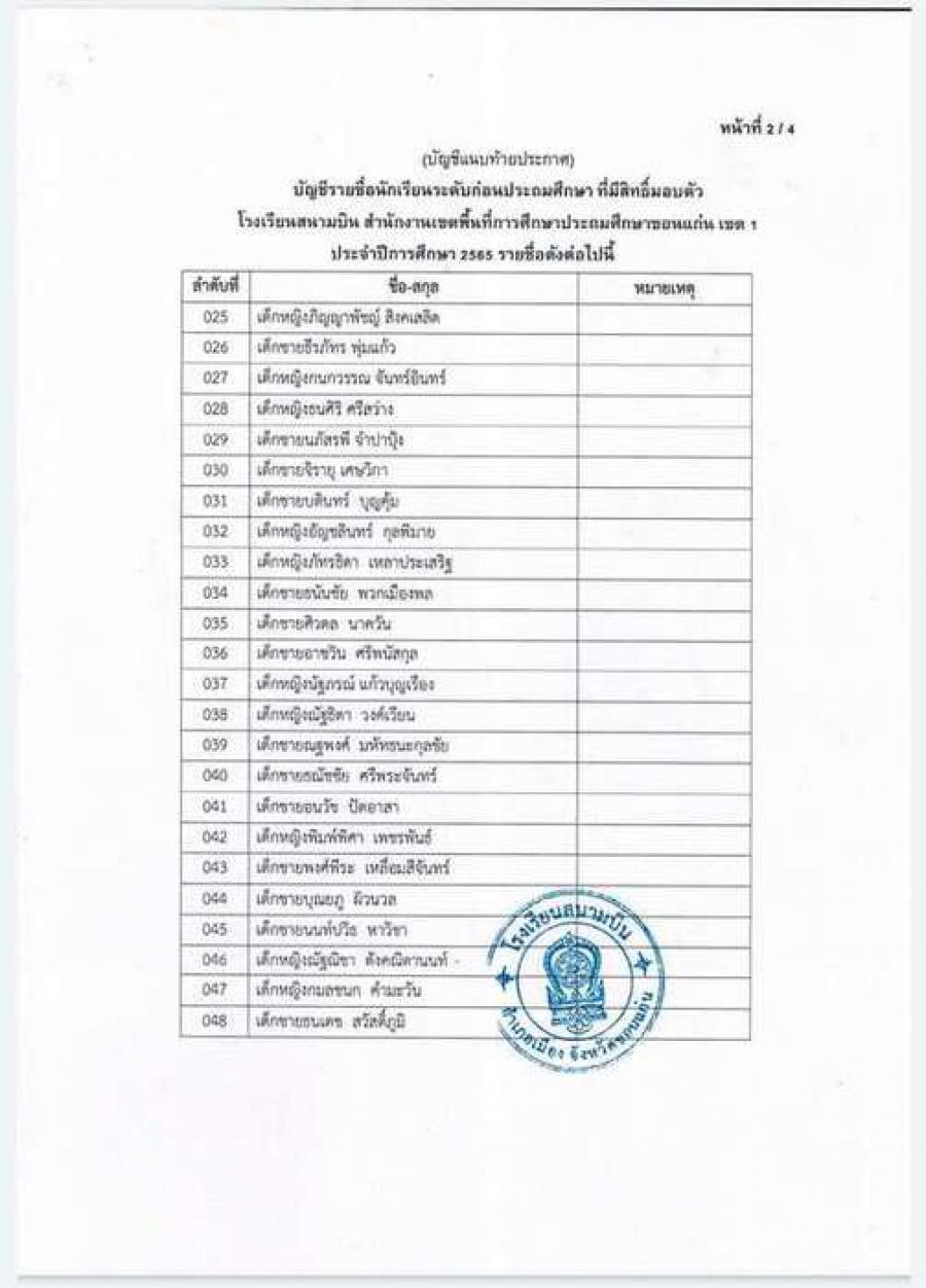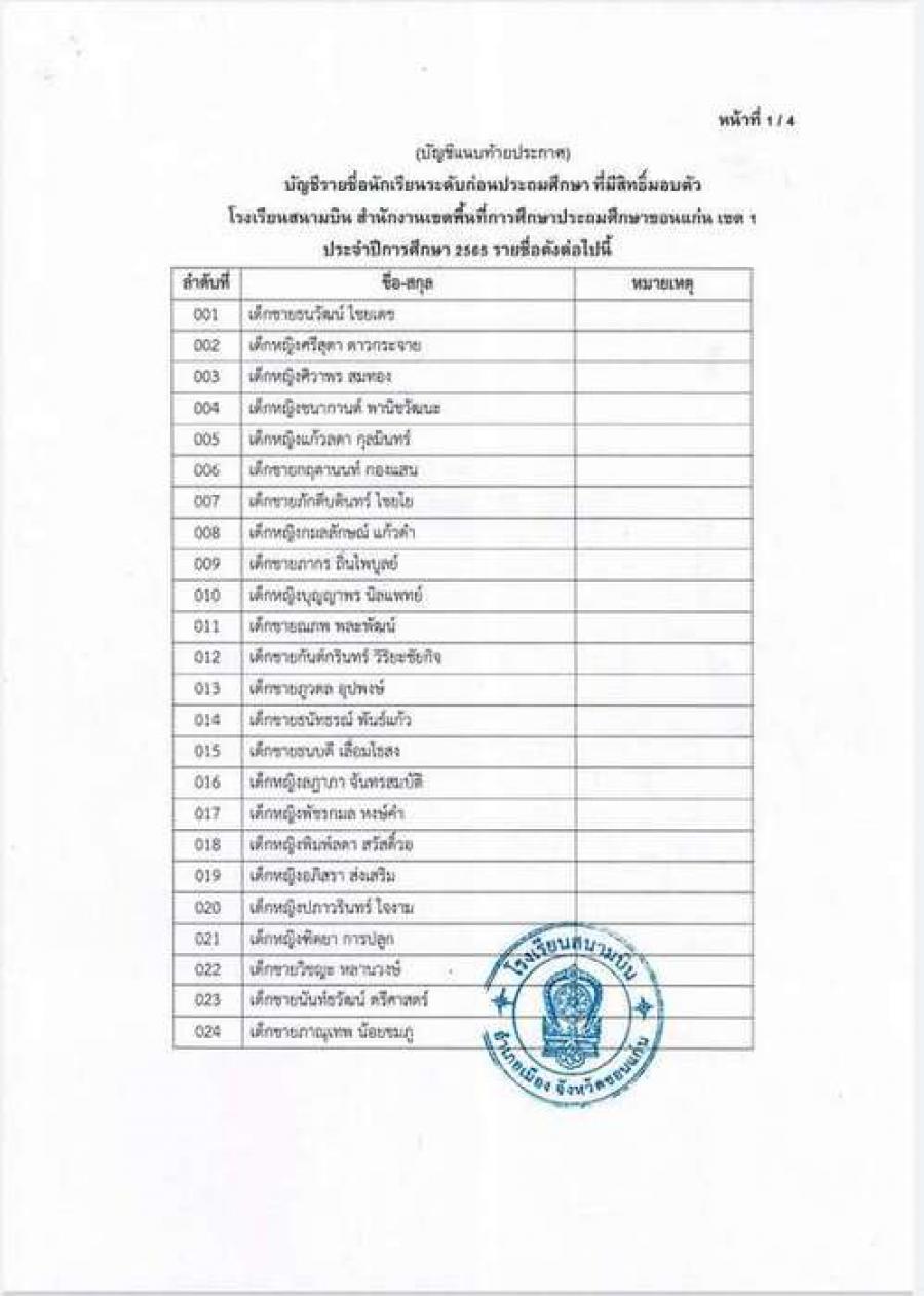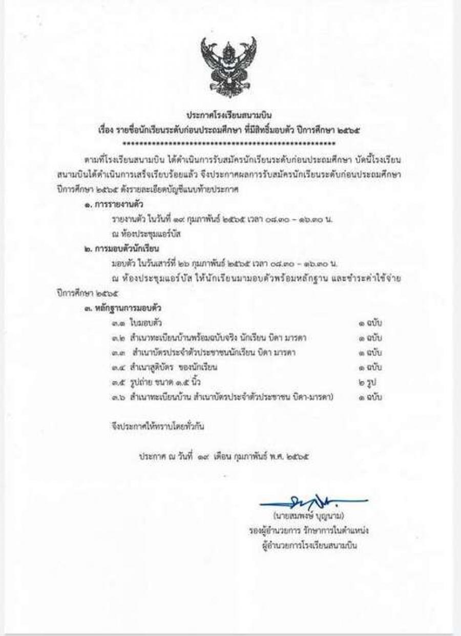ประกาศรายชื่อนักเรียนระดับก่อนประถมศึกษา ที่มีสิทธิ์มอบตัว ปีการศึกษา2565 S:0