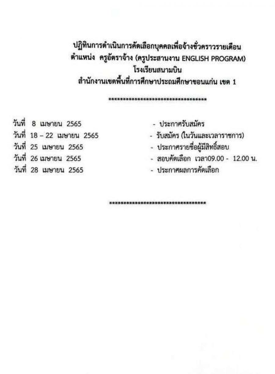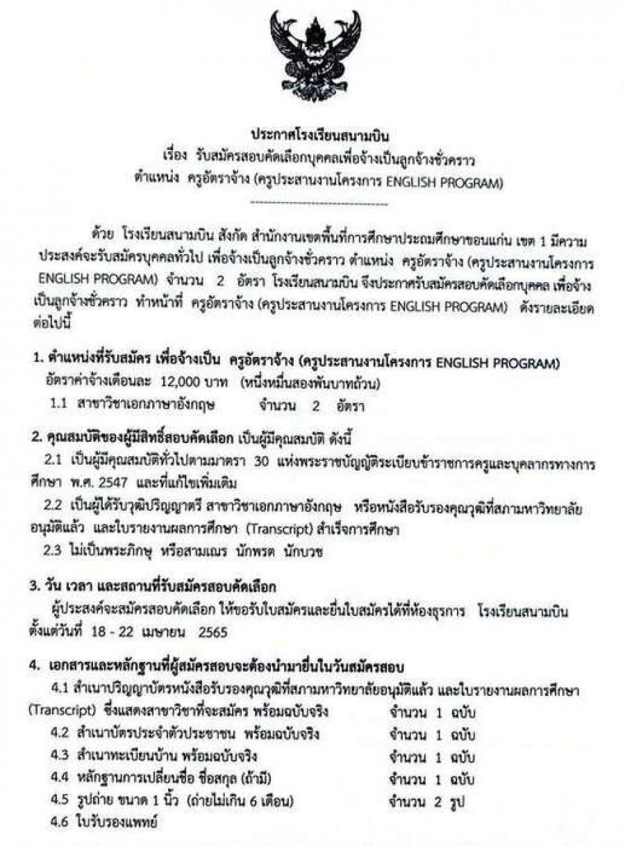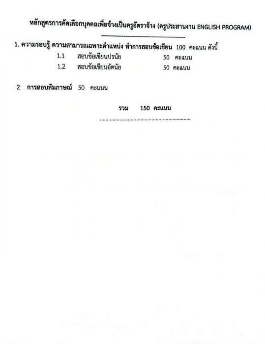 รับสมัครสอบคัดเลือกบุคคลเพื่อจ้างเป็นลูกจ้างชั่วคราว ตำแหน่งครูอัตราจ้าง (ครูประสานงานโครงการ ENGLISH PROGRAM) S:0