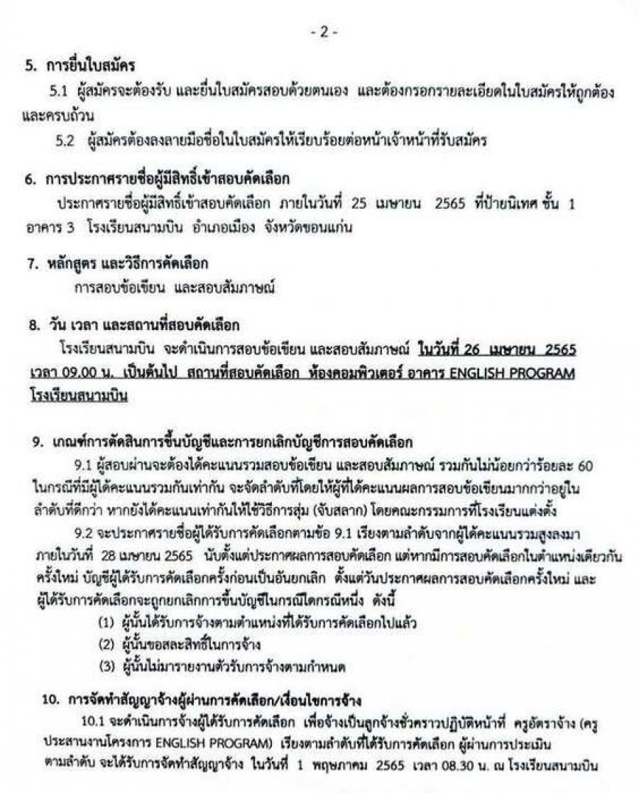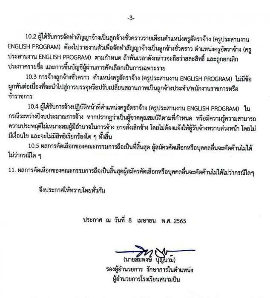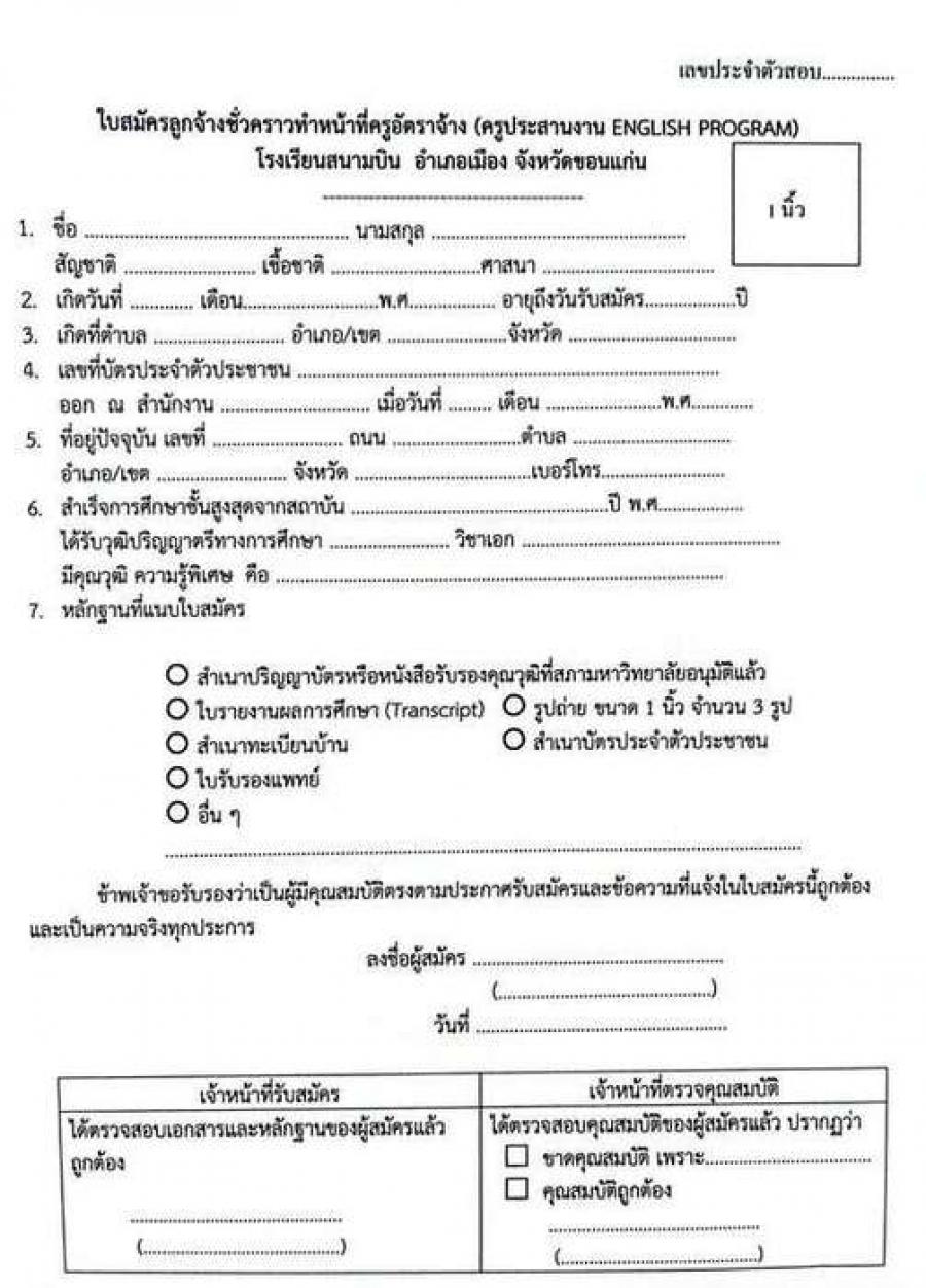 รับสมัครสอบคัดเลือกบุคคลเพื่อจ้างเป็นลูกจ้างชั่วคราว ตำแหน่งครูอัตราจ้าง (ครูประสานงานโครงการ ENGLISH PROGRAM) S:0