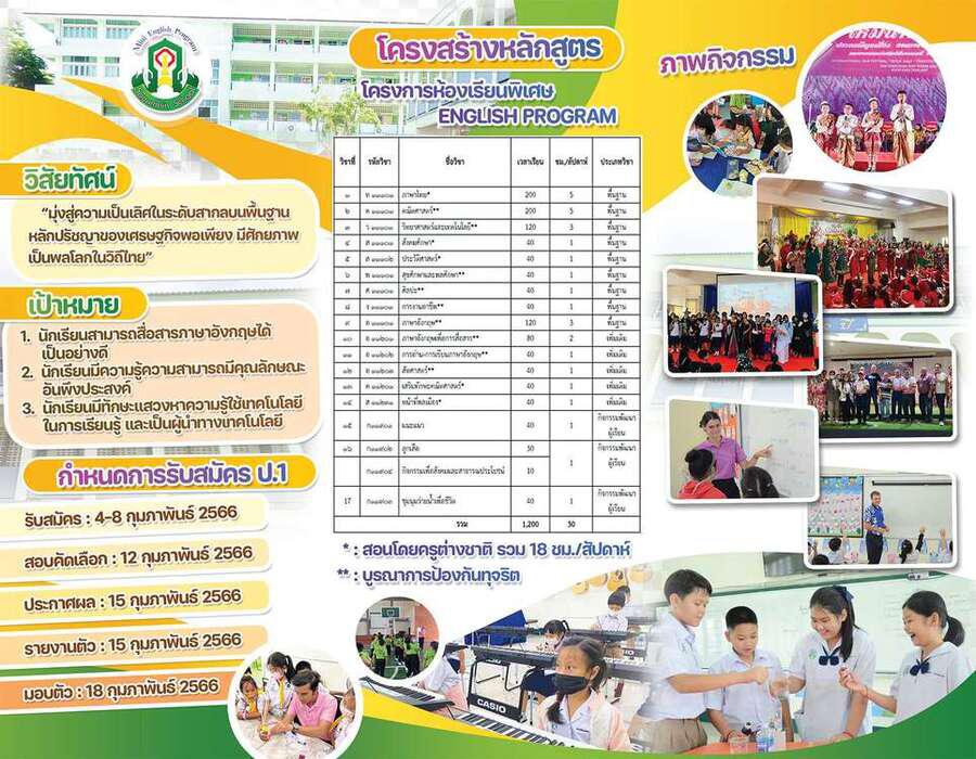 รับสมัครนักเรียนโครงการห้องเรียนพิเศษ ENGLISH PROGRAM ประจำปีการศึกษา2566 S:0