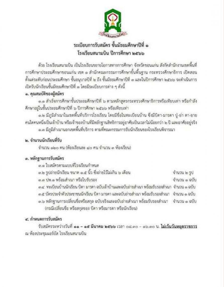 ระเบียบการรับสมัครชั้นมัธยมศึกษาปีที่๑โรงเรียนสนามบินปีการศึกษา๒๕๖๖ S:0