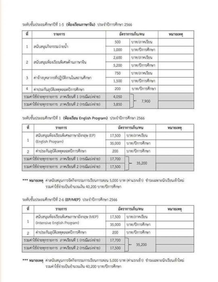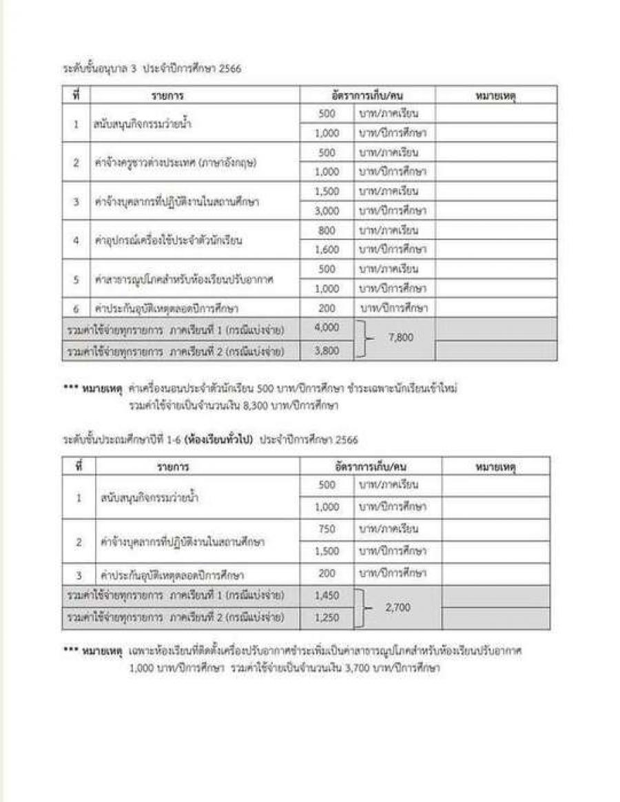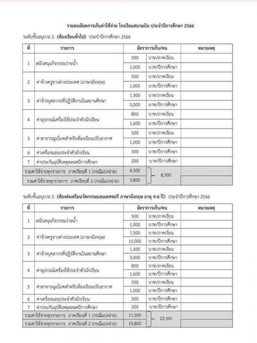 รายละเอียดค่าใช้จ่ายโรงเรียนสนามบินประจำปีการศึกษา 2566