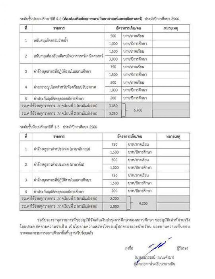 รายละเอียดค่าใช้จ่ายโรงเรียนสนามบินประจำปีการศึกษา 2566 S:0