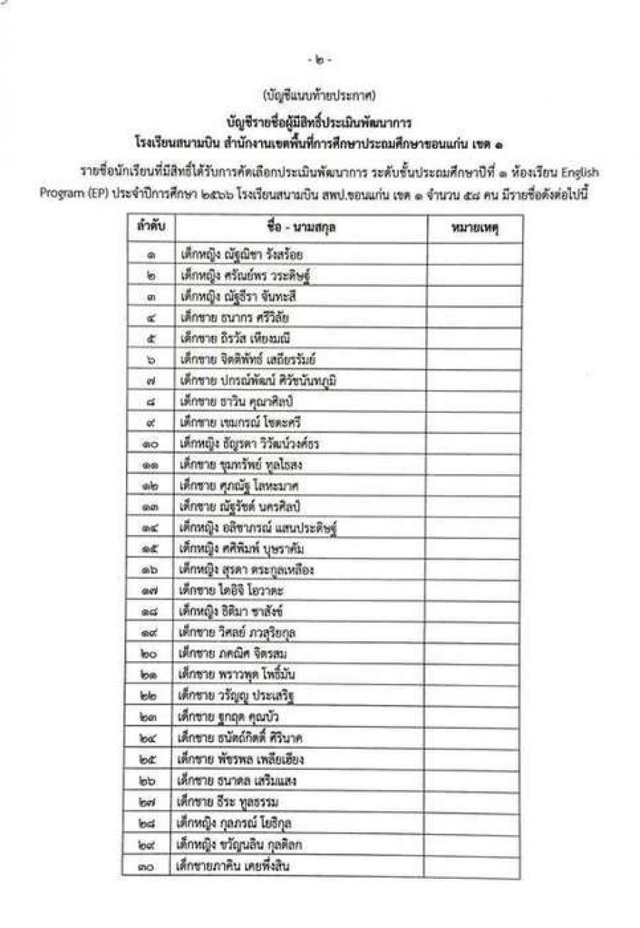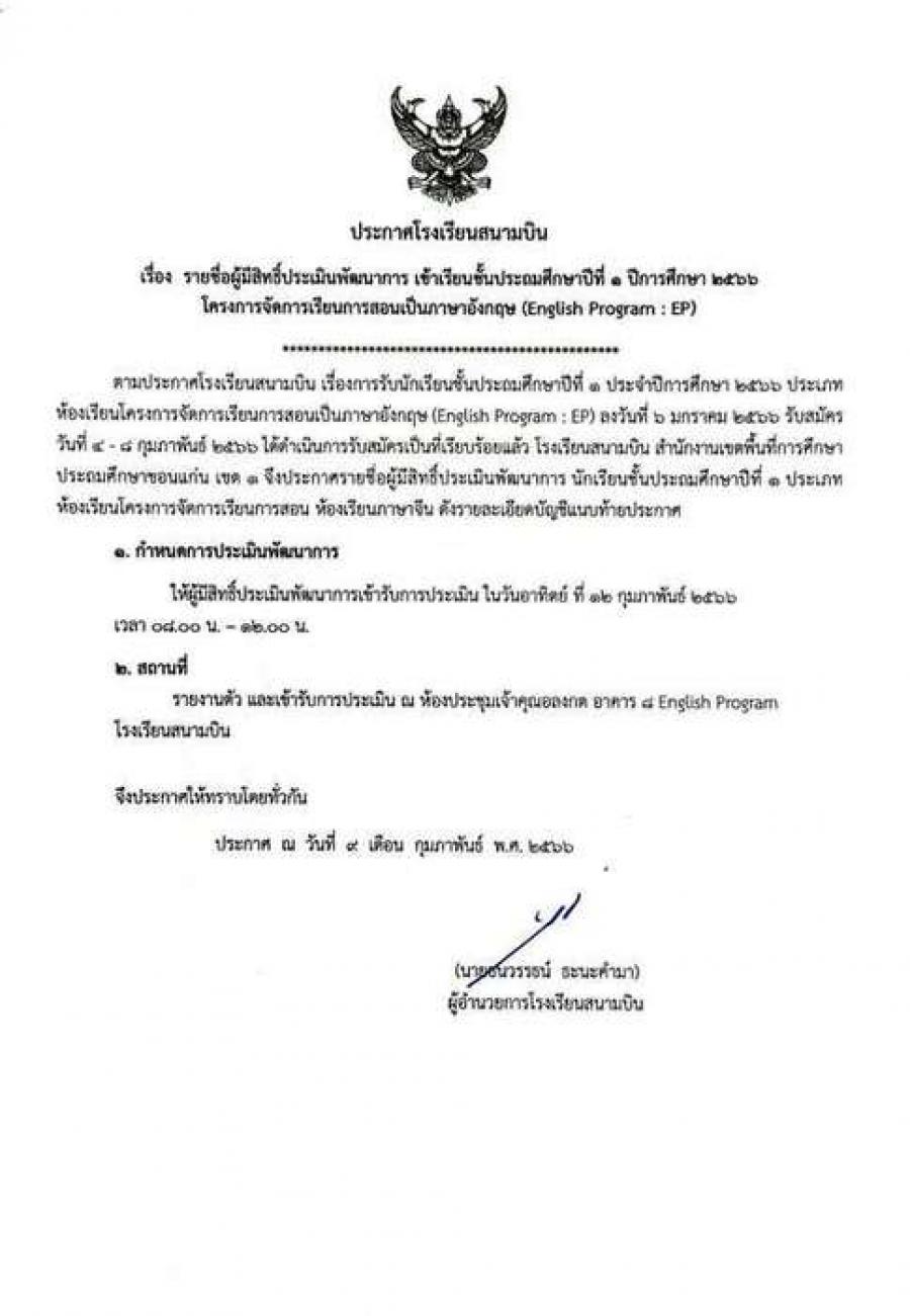 ประกาศ รายชื่อนักเรียนที่มีสิทธิ์ประเมินพัฒนาการ ป.1 ห้องเรียนโครงการพิเศษ EP S:0